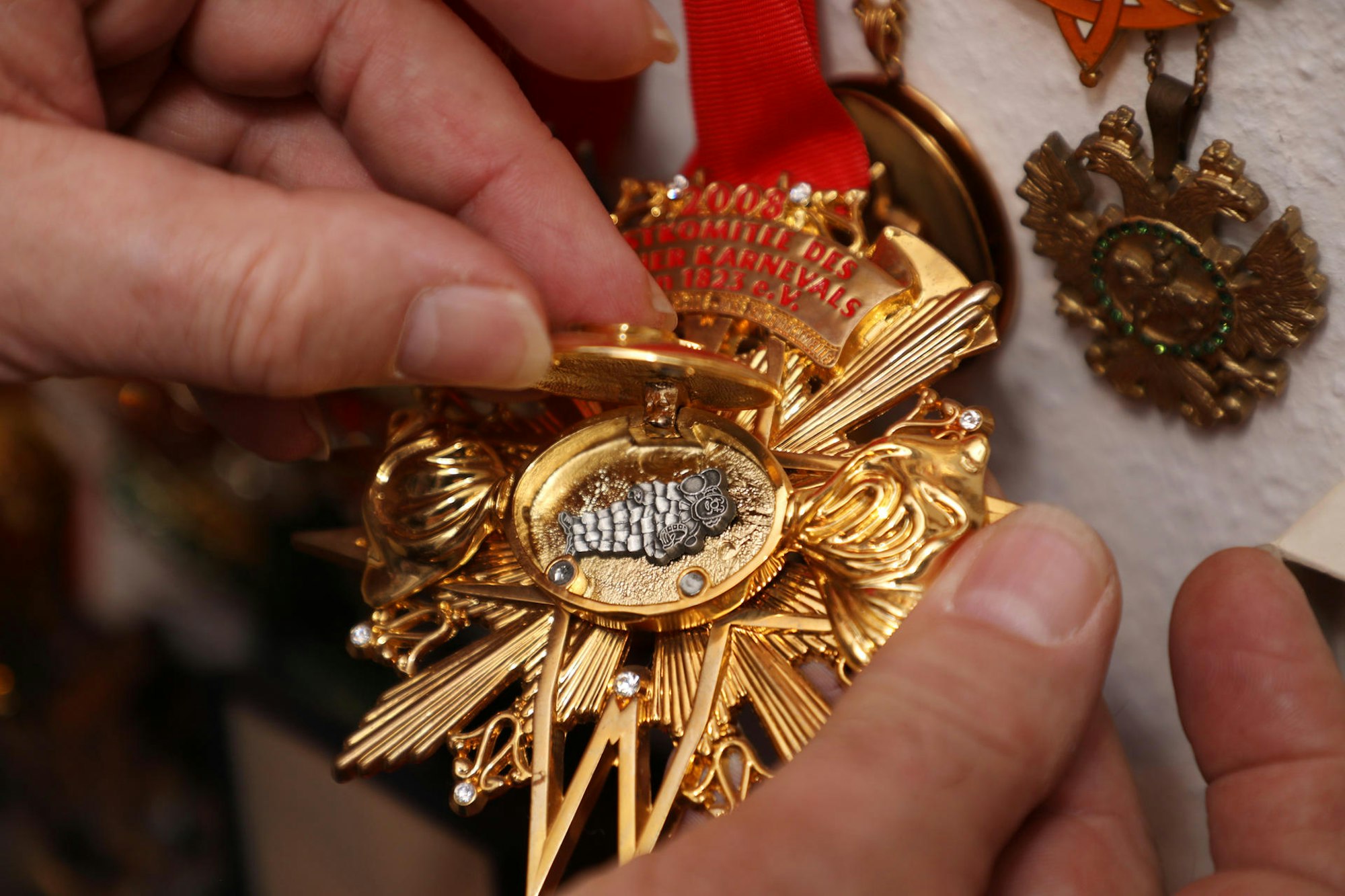 Ob filigrane Orden vom Kölner Festkomitee zum Öffnen.