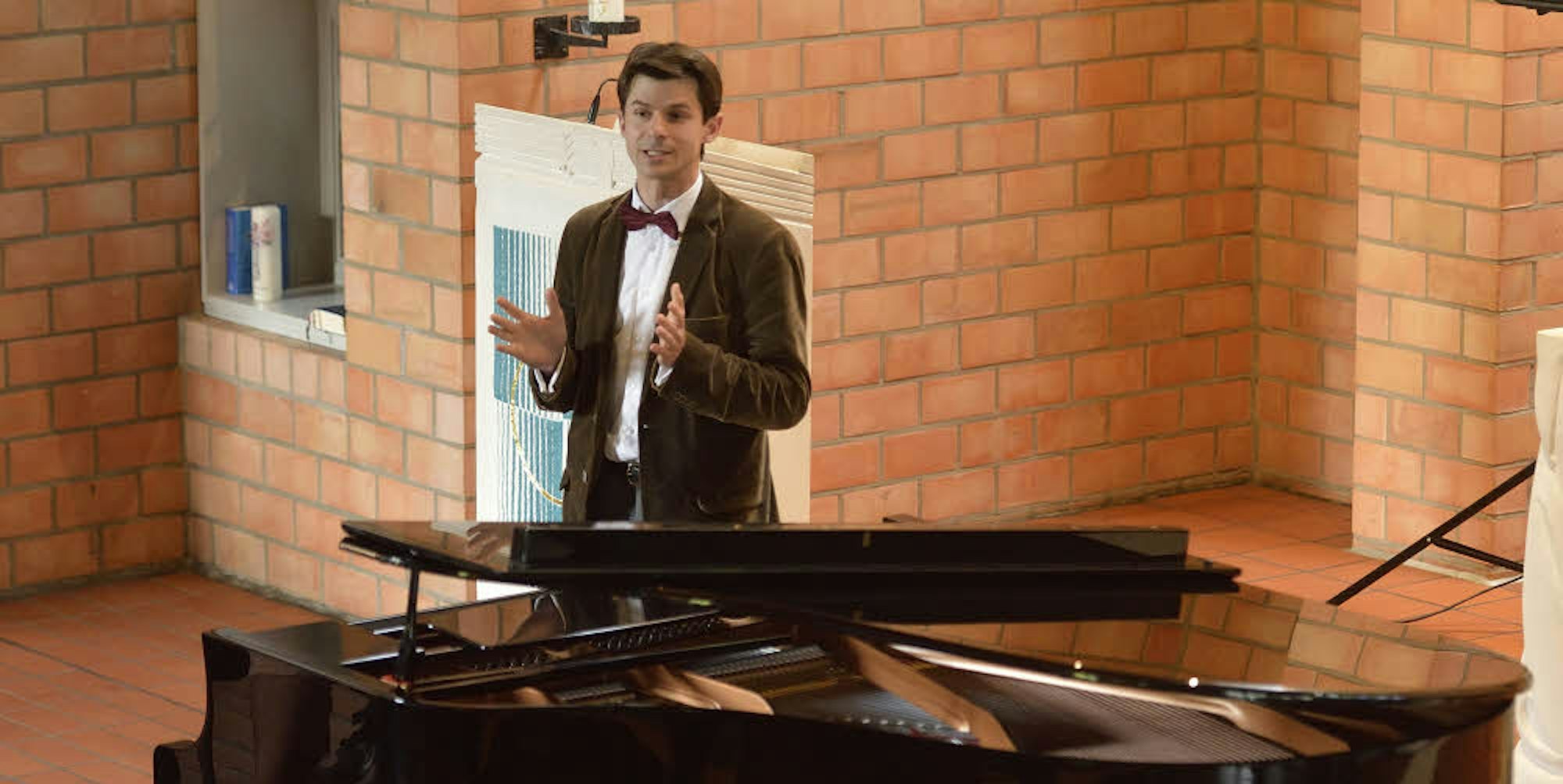 Den Pianisten Roman Salyutov hatte die Gemeinde vor der Anschaffung um seinen Rat gebeten. Er sprach sich für das jetzt erworbene Instrument aus und stellte es auch vor.