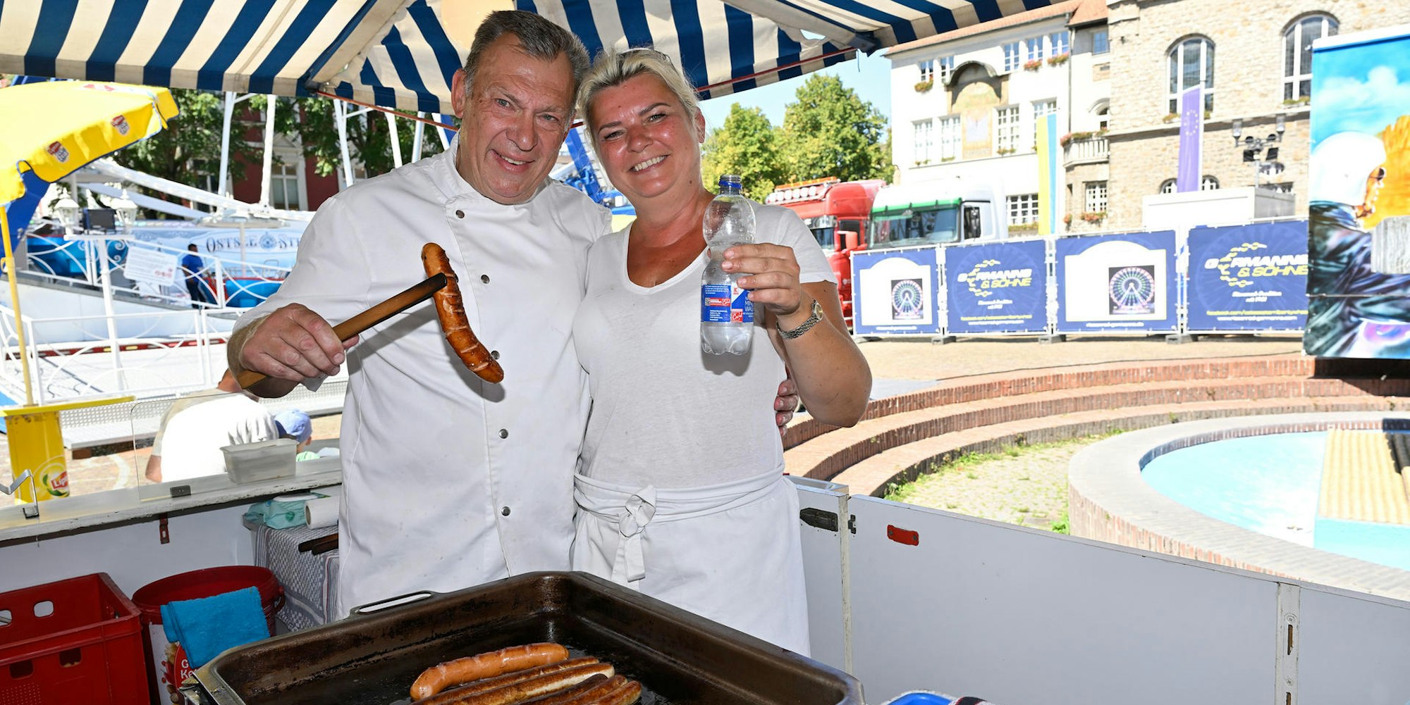 Josef Müller (hier mit seiner Frau Inge in Müllers Bratwurst-Pavillon auf der diesjährigen Laurentiuskirmes) starb völlig unerwartet an seinem 62. Geburtstag.