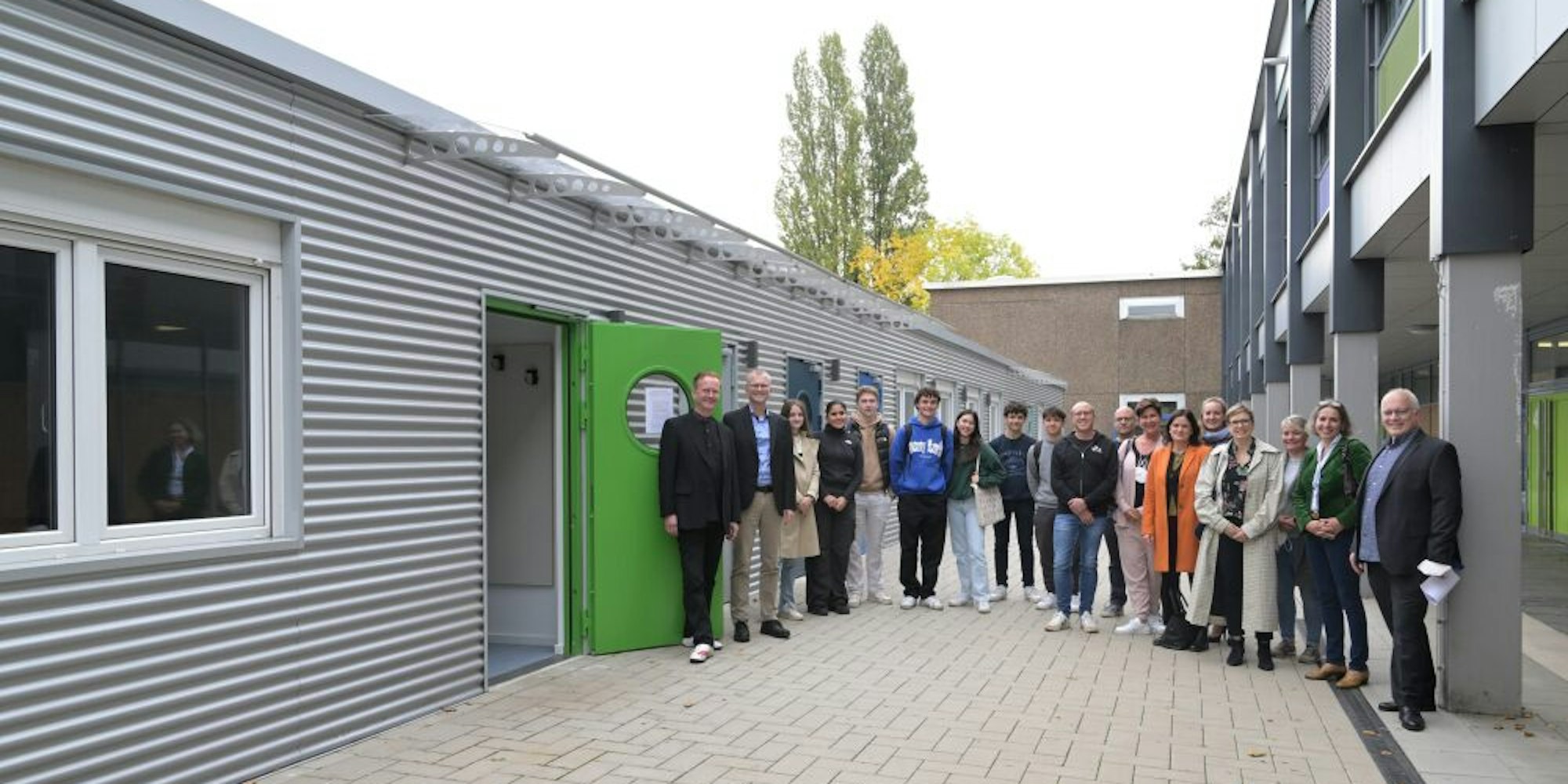 Für 300 Schülerinnen und Schüler des Bensberger Gymnasiums entstanden auf dem Außengelände neue Unterrichtsräume: 16 Einzelcontainer, zuvor auf dem Carpark-Gelände im Ortsteil Lückerath genutzt, wurden komplett umgestaltet und für einen modernen Schulbetrieb hergerichtet.