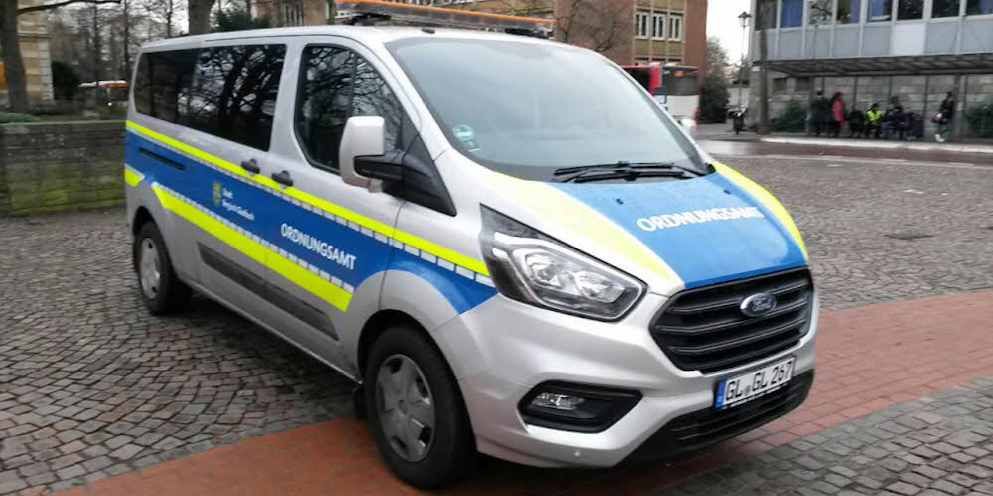 Bergisch Gladbach – Dieses Auto soll zum Verwechseln ähnlich sehen. Je besser die optische Täuschung wirkt, um so besser. Der Mehrsitzer, den die Stadt Bergisch Gladbach jetzt in Dienst gestellt hat, erinnert mit seinen blauen Streifenbanderolen stark an ein Einsatzfahrzeug der Polizei, ja, es könnte fast ein Zwilling sein. Die Farbgebung und die Positionierung der Klebefolie sind bewusst angepasst an die Optik der Polizeiwagen. Es geht den Mitarbeitern des Ordnungsamtes um so etwas wie „Waffengleichheit“ mit den Kollegen von der Polizei. Die Polizei-Optik soll eine bewusstere Wahrnehmung bei den Bürgern mit sich bringen und den Auftritt der städtischen Mitarbeiter deutlich verstärken.