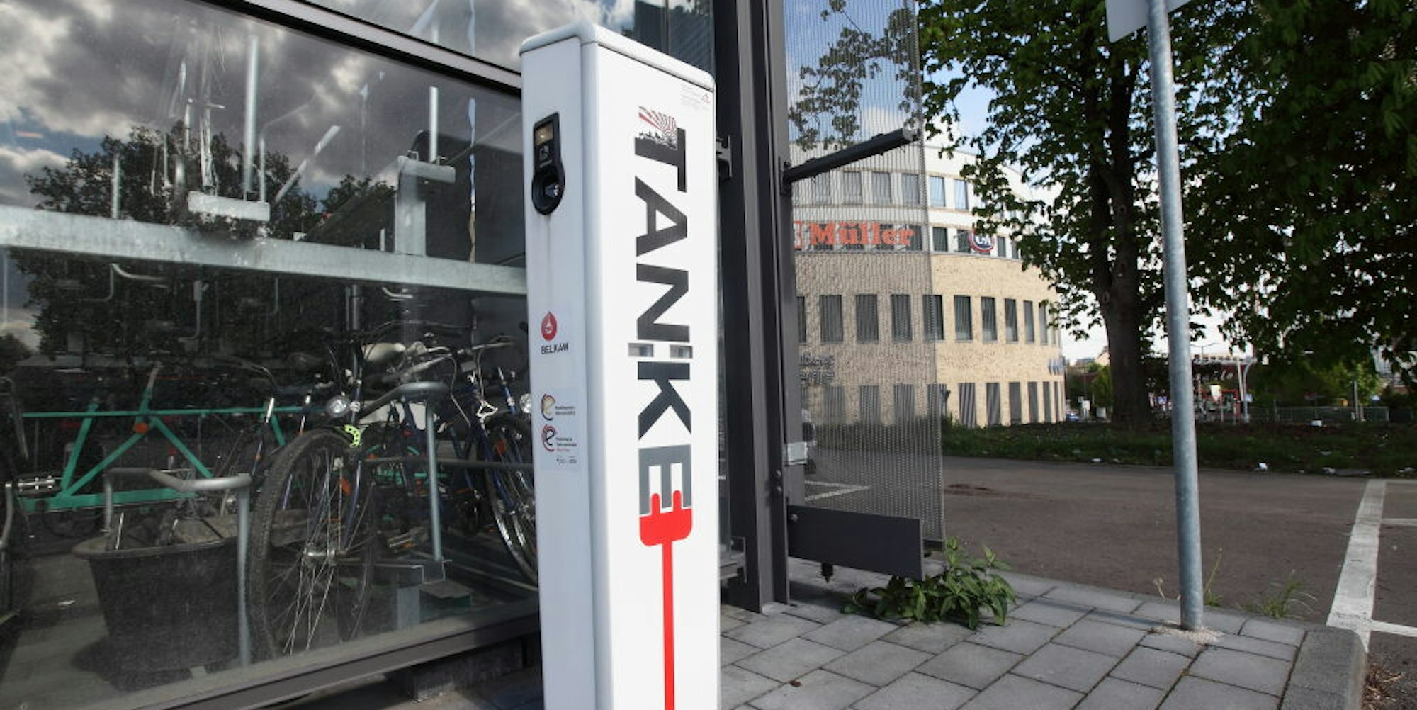 Eine Ladestation für E-Autos am Bergisch Gladbacher S-Bahnhof.
