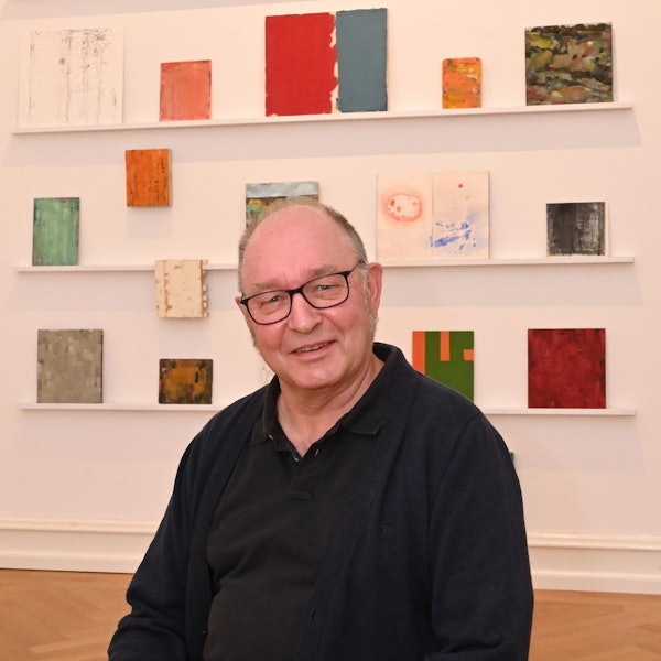 Acht Tafeln hat Gesa Lange zu einem großformatigen Wandbild zusammengestellt, das den Besucher empfängt.