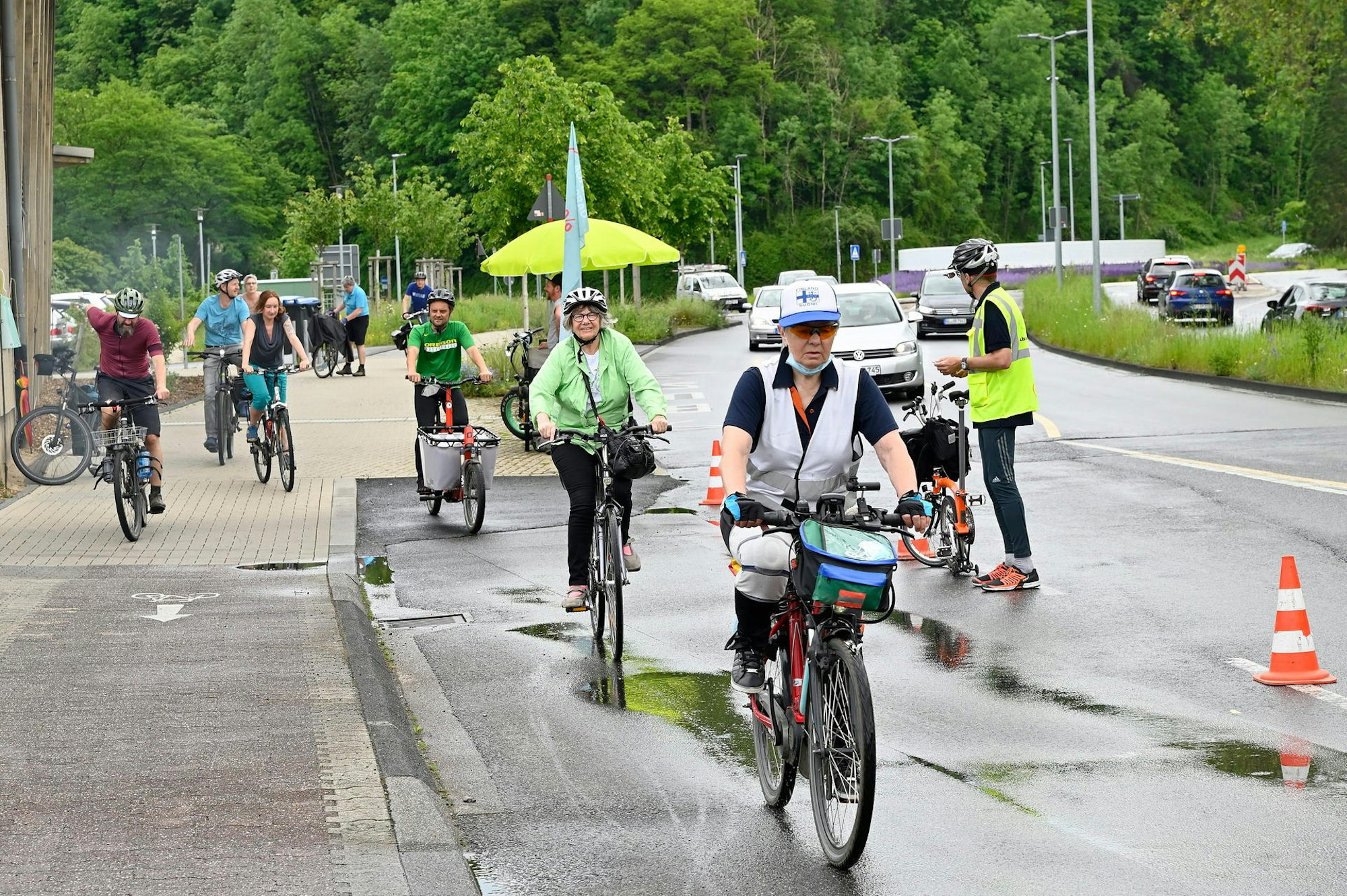 Radfahrer bei ihrer Demo an Fronleichnam.