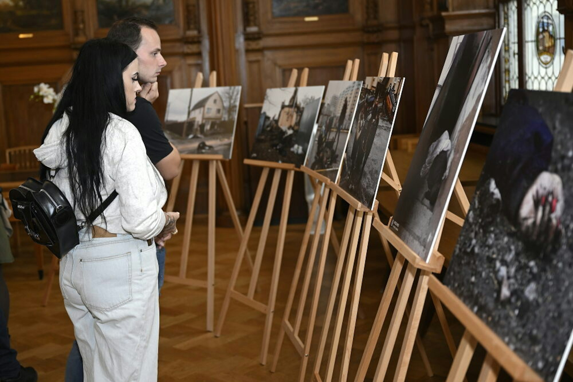 Berührend: Die Ausstellung von Bildern aus Butscha, die noch bis Mittwoch im Rathaus Stadtmitte zu sehen ist.