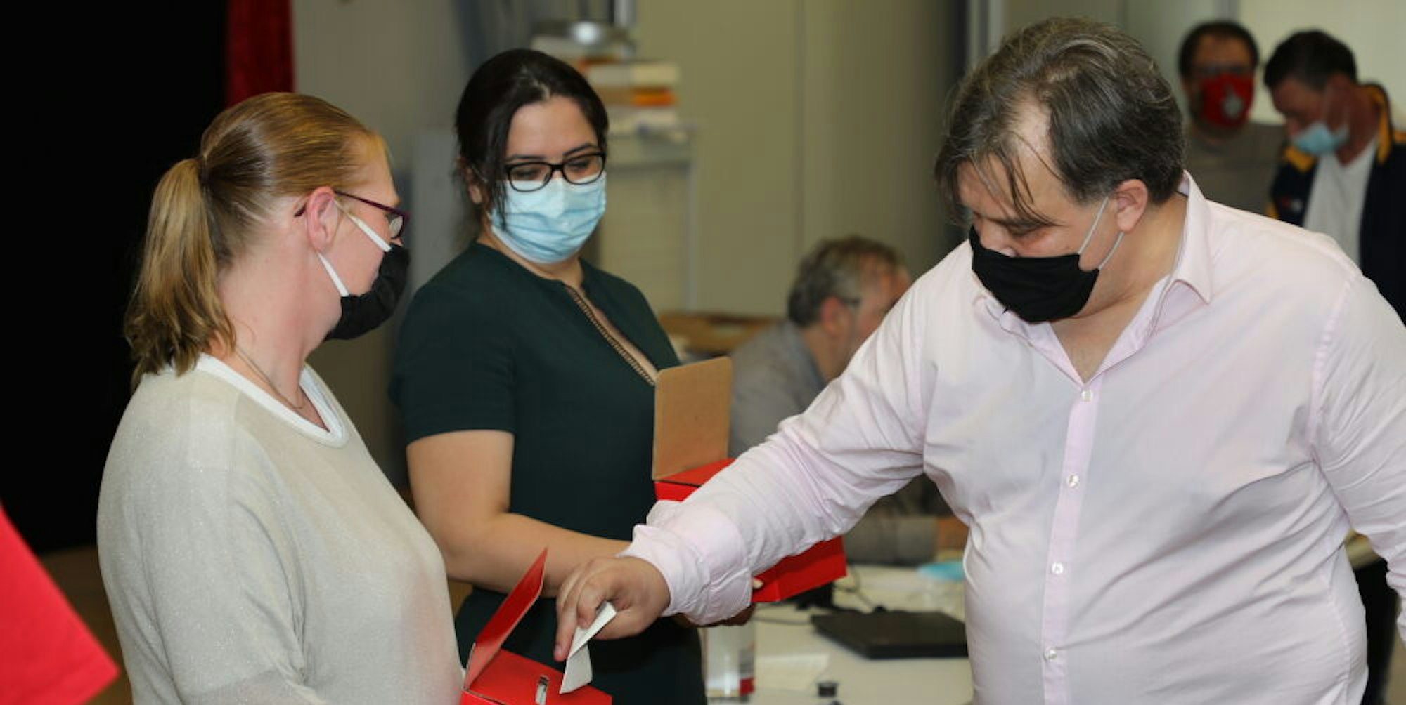 In geheimer Abstimmung sprachen sich zwei Drittel der Kreisversammlungsmitglieder (hier: Kreisvorstand Tomás Santillán bei der Stimmabgabe) für eine Auflösung des Gladbacher Ortsverbands aus.