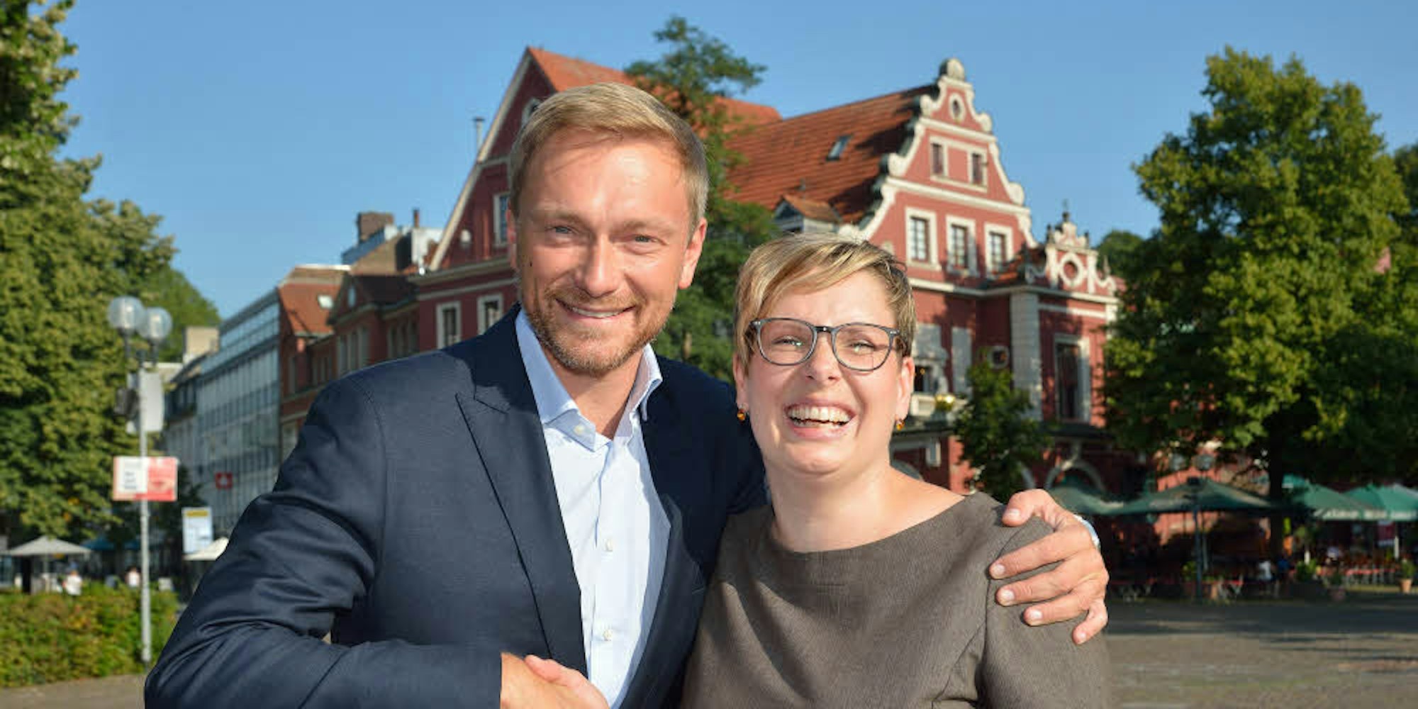Der FDP-Bundesvorsitzende Christian Lindner mit der Landratskandidatin Dorothee Wasmuth.