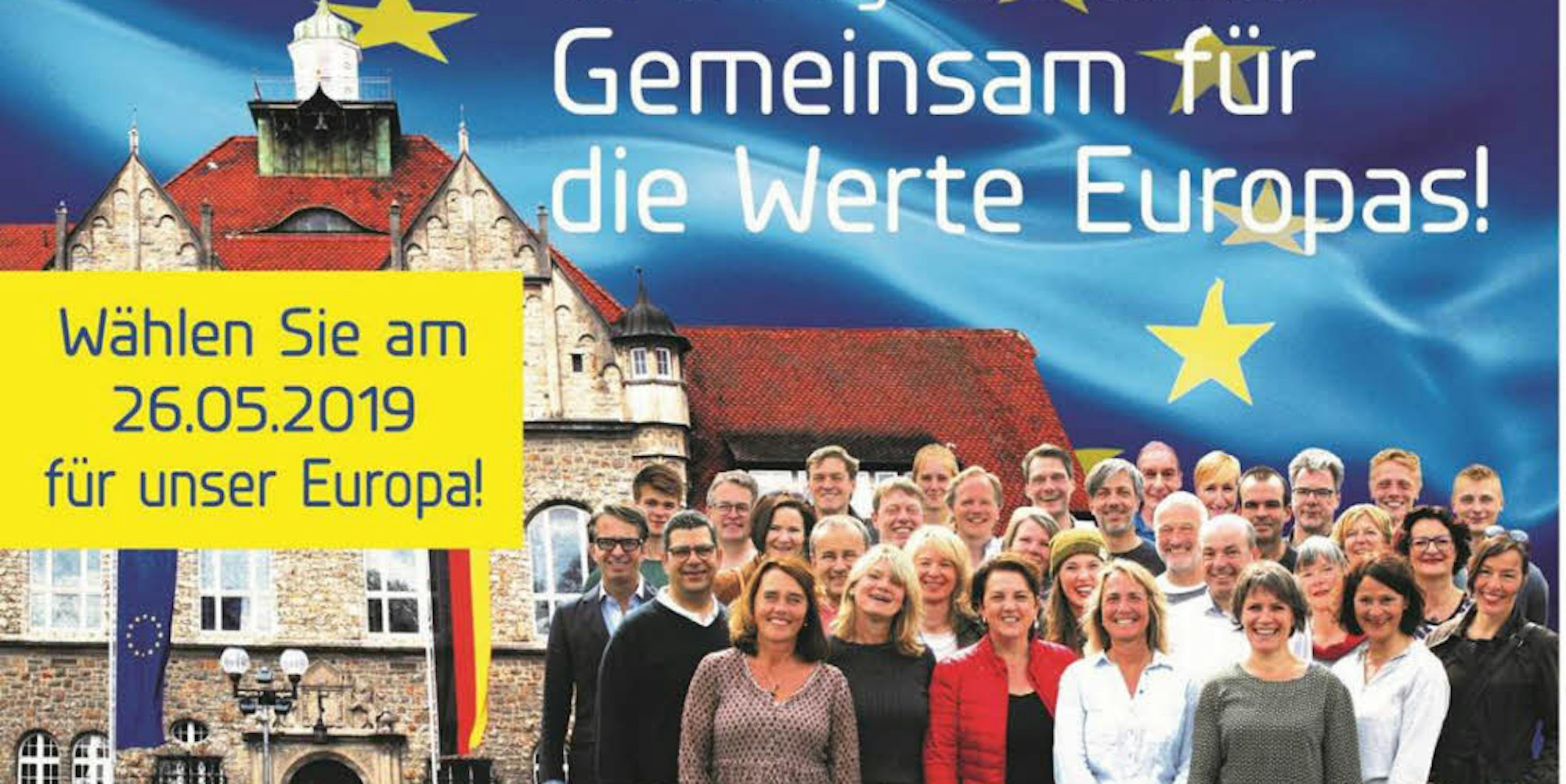 Bergisch Gladbach – „Gemeinsam für die Werte Europas!“ steht in unübersehbaren XXL-Buchstaben auf dem großflächigen Plakat zu lesen. Die Initiative aus Gladbacher Bürgern setzt ihre selbst finanzierte, ausgefallene Europa-Kampagne fort. Hauptziel ist es, die Bürger zu motivieren, sich die Vorzüge der Europäischen Gemeinschaft vor Augen zu führen und am 26. Mai wählen zu gehen.
