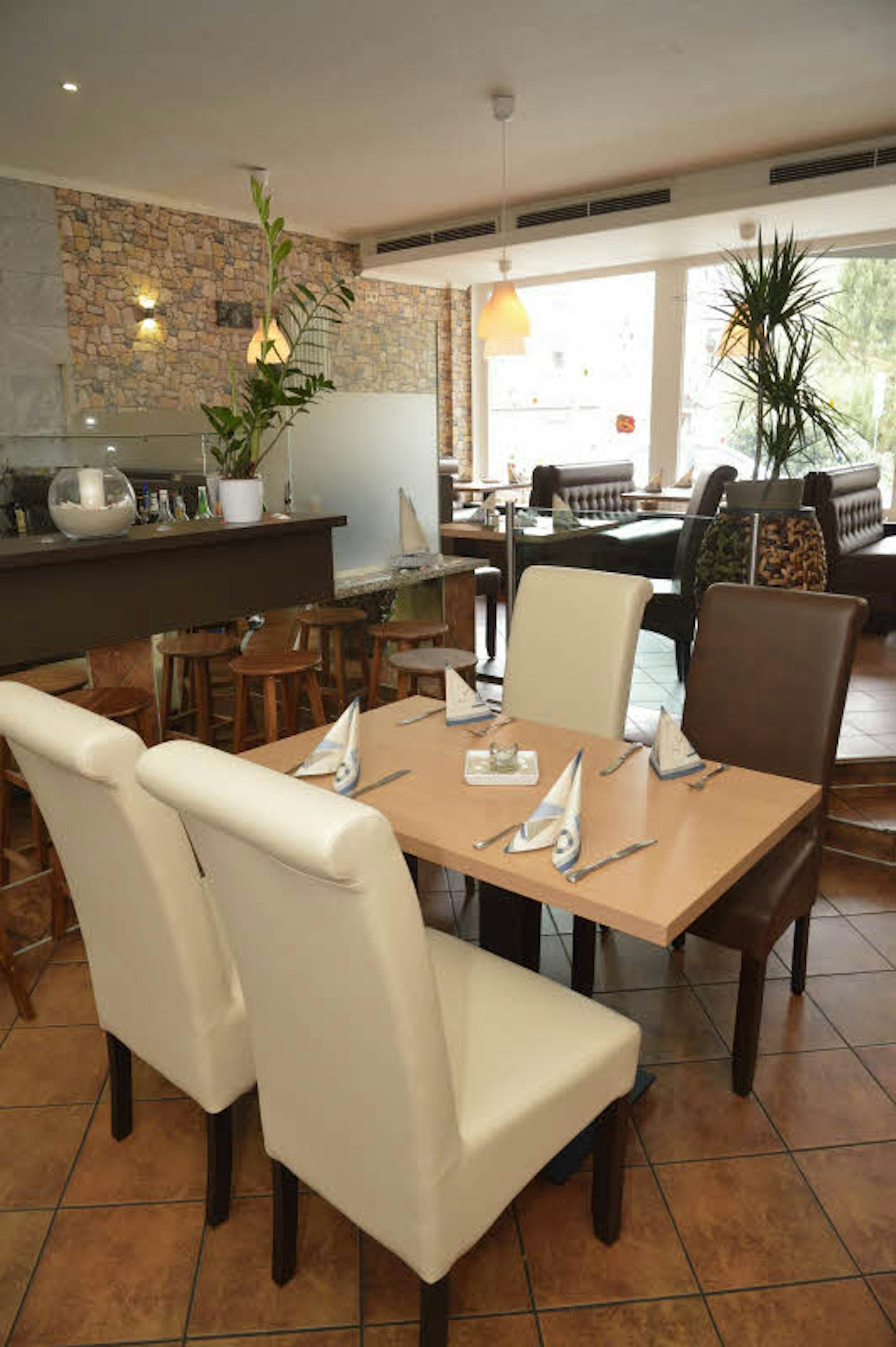 Die Einrichtung ist in warmen Farben gestaltet. Das passt zu der mediterranen Speisen-Auswahl.