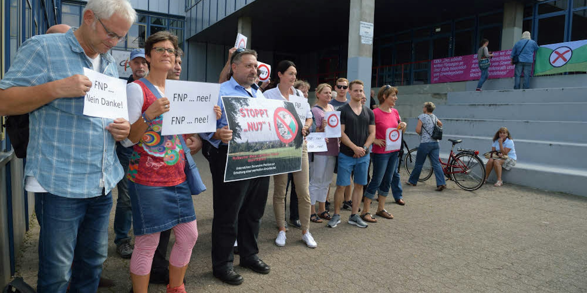 Auf Schilder haben die Bürger geschrieben, was ihnen am Entwurf des neuen Flächennutzungsplans missfällt und warnen vor den Spätfolgen für die Natur.
