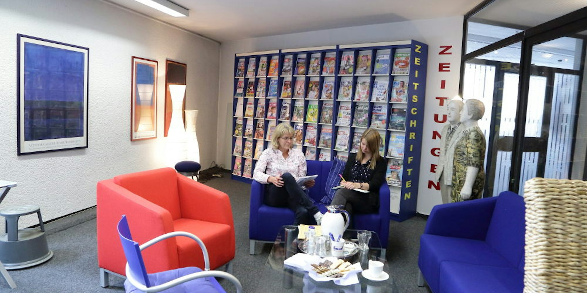 Gemütliche Leseecke in der Bücherei: Dieses Angebot möchte Direktorin Monika Gippert (l.) erweitern.
