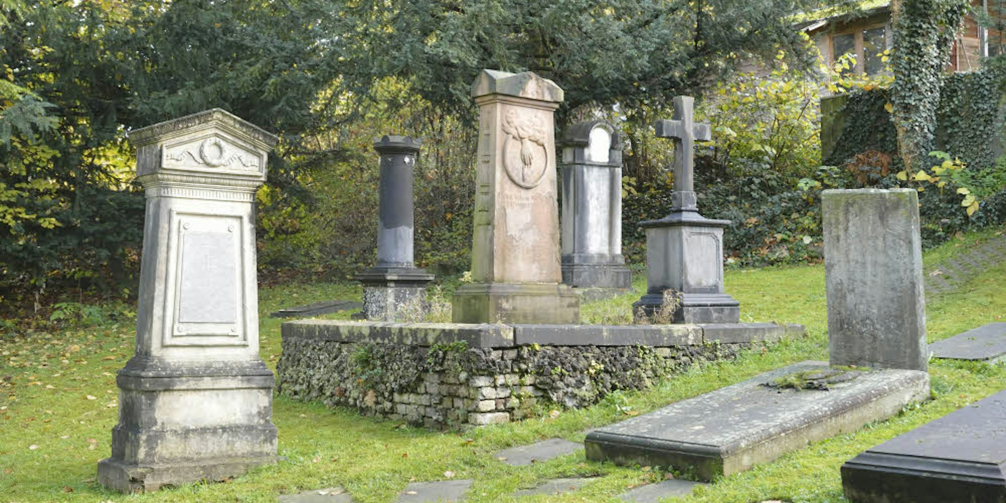 Gemeinsam mit Manfred-Walter Kautz hatte er schon 2004 die Dokumentation „Gegen das Vergessen – der alte Friedhof an der Gnadenkirche in Bergisch Gladbach“ verfasst. 34 der alten Grabsteine, -platten, Stelen und Denkmäler haben die Zeit überdauert, allerdings nicht unversehrt. Restauratorische Arbeiten seien dringend erforderlich, damit der zerstörerische Prozess nicht weitergehe, erläuterte der Restaurator Stefan Glossner am Beispiel einer vermoosten Grabplatte.