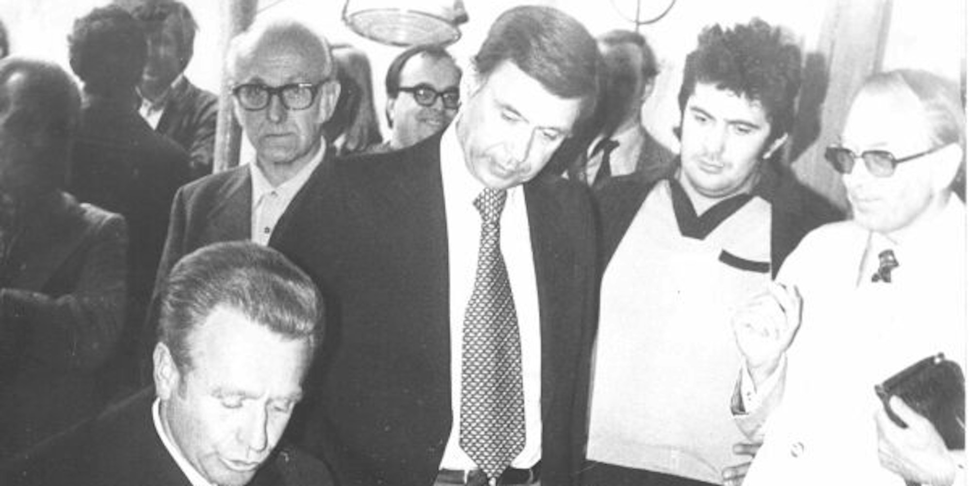 Stadtdirektor Otto Fell bei der Grundsteinlegung 1977.