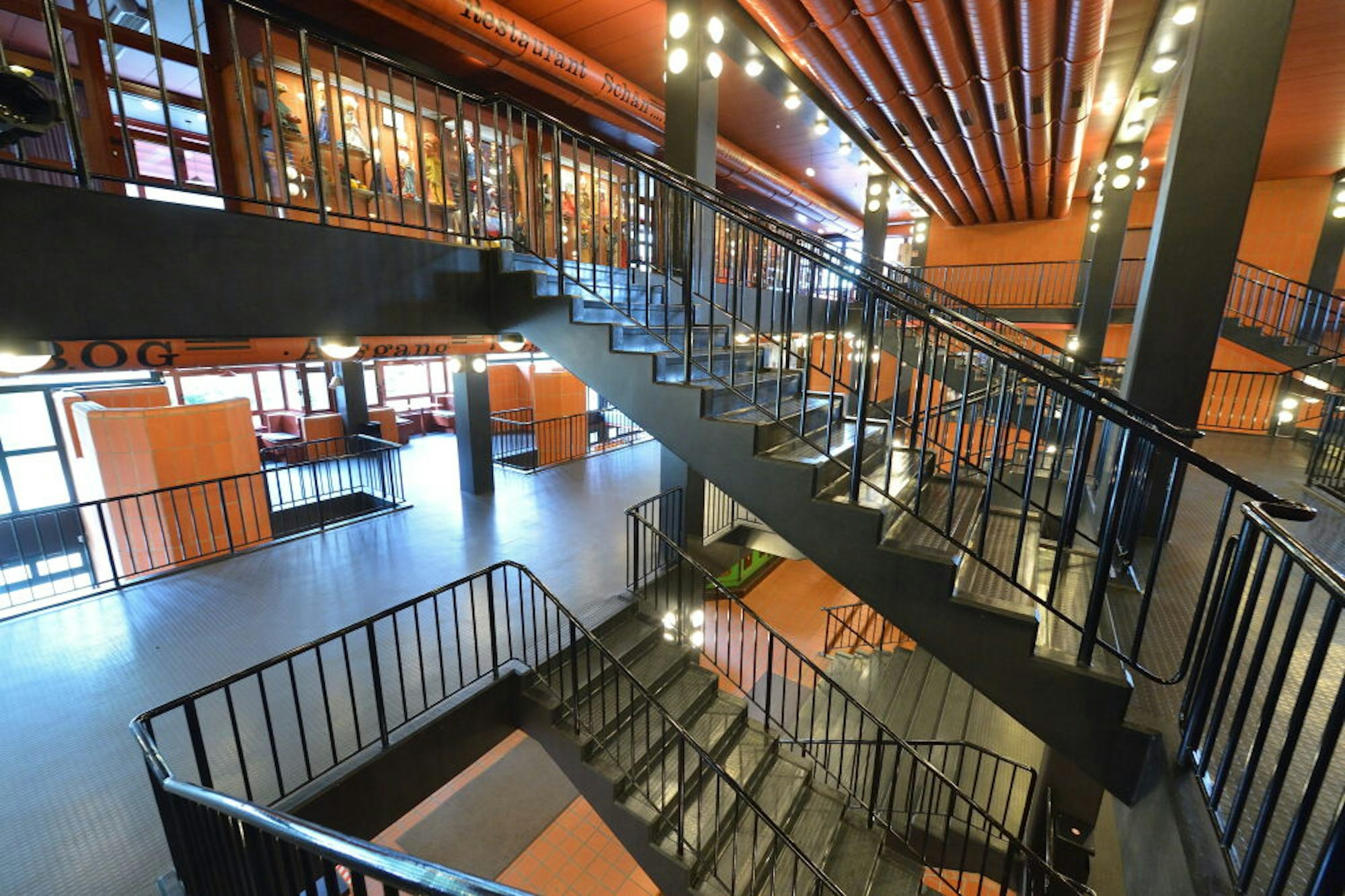 Runde Fahrstuhltürme mit außen verlaufenden Wendeltreppen, Säle, die wie Plätze konzipiert sind, Erker, Pavillons, Emporen und Logen, gerundete Kanten – der Bergische Löwe, im Inneren gestaltet wie ein Außenraum, zeigt die typischen Merkmale dieser Böhm’schen Schaffensphase. Und das Gebäude sei, „dank der kontinuierlichen Pflege und Instandhaltung, in einem bemerkenswert authentischen Zustand“, freut sich Katja Fröhlich. „Bei jedem Besuch entdecke ich neue Details.“