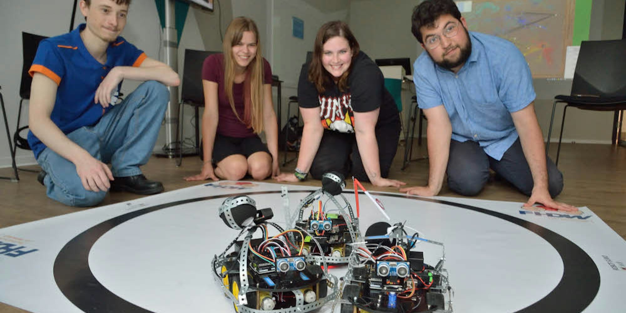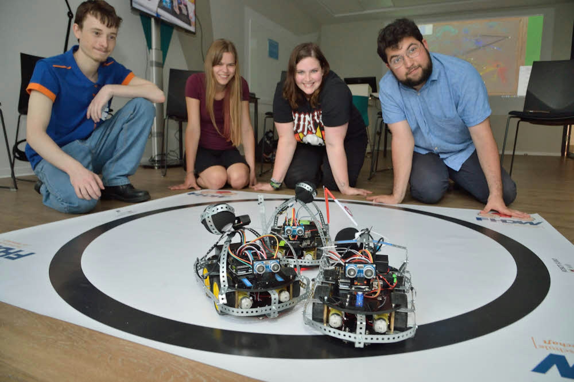 Ringkampf der Maschinen: Die Sumo-Bots, autoskooterähnliche Modellfahrzeuge, gingen in der Arena auf Crash-Kurs.