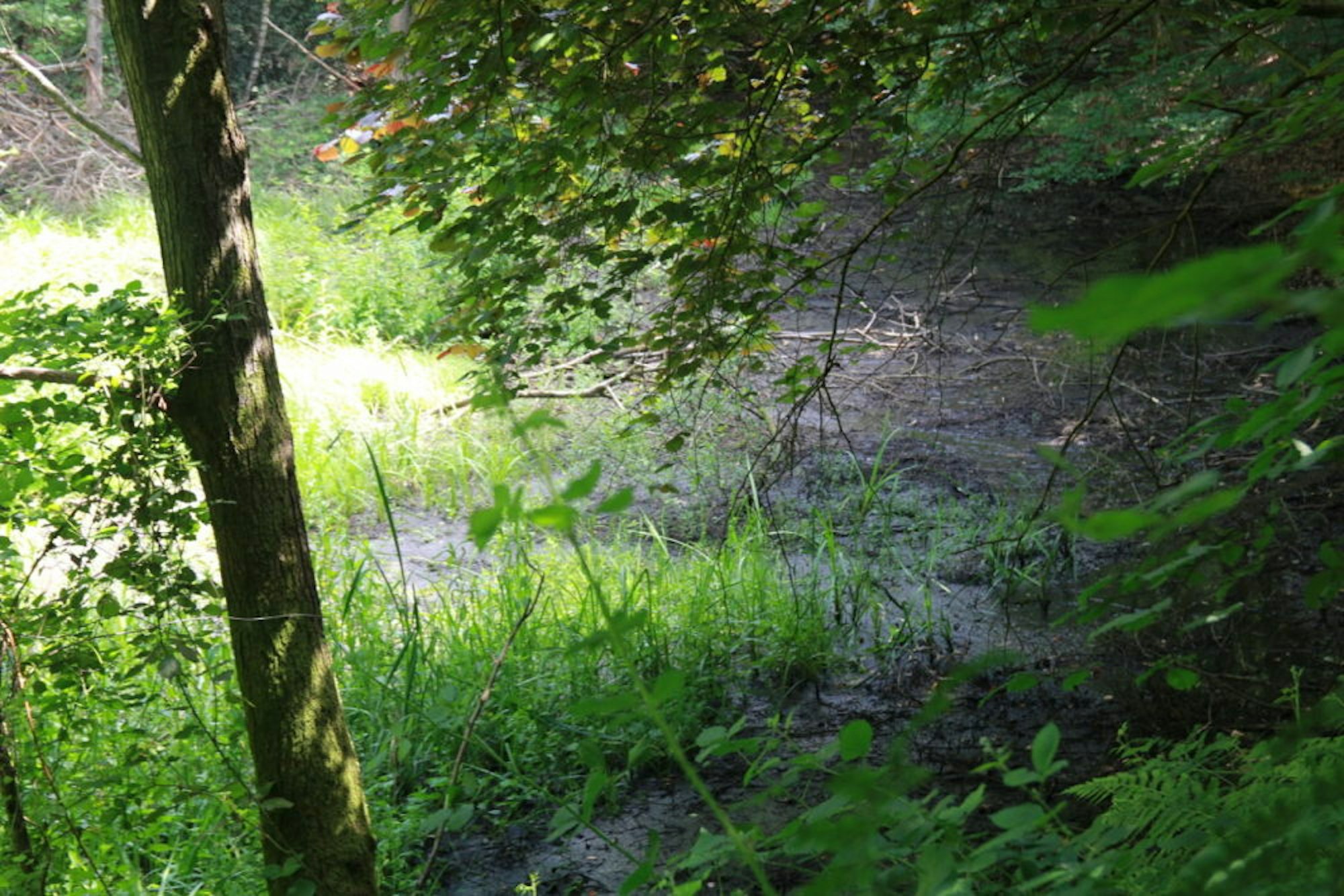 An vielen Stellen ist der Teich verlandet. Mönche aus Altenberg sollen hier früher Fischzucht betrieben haben.