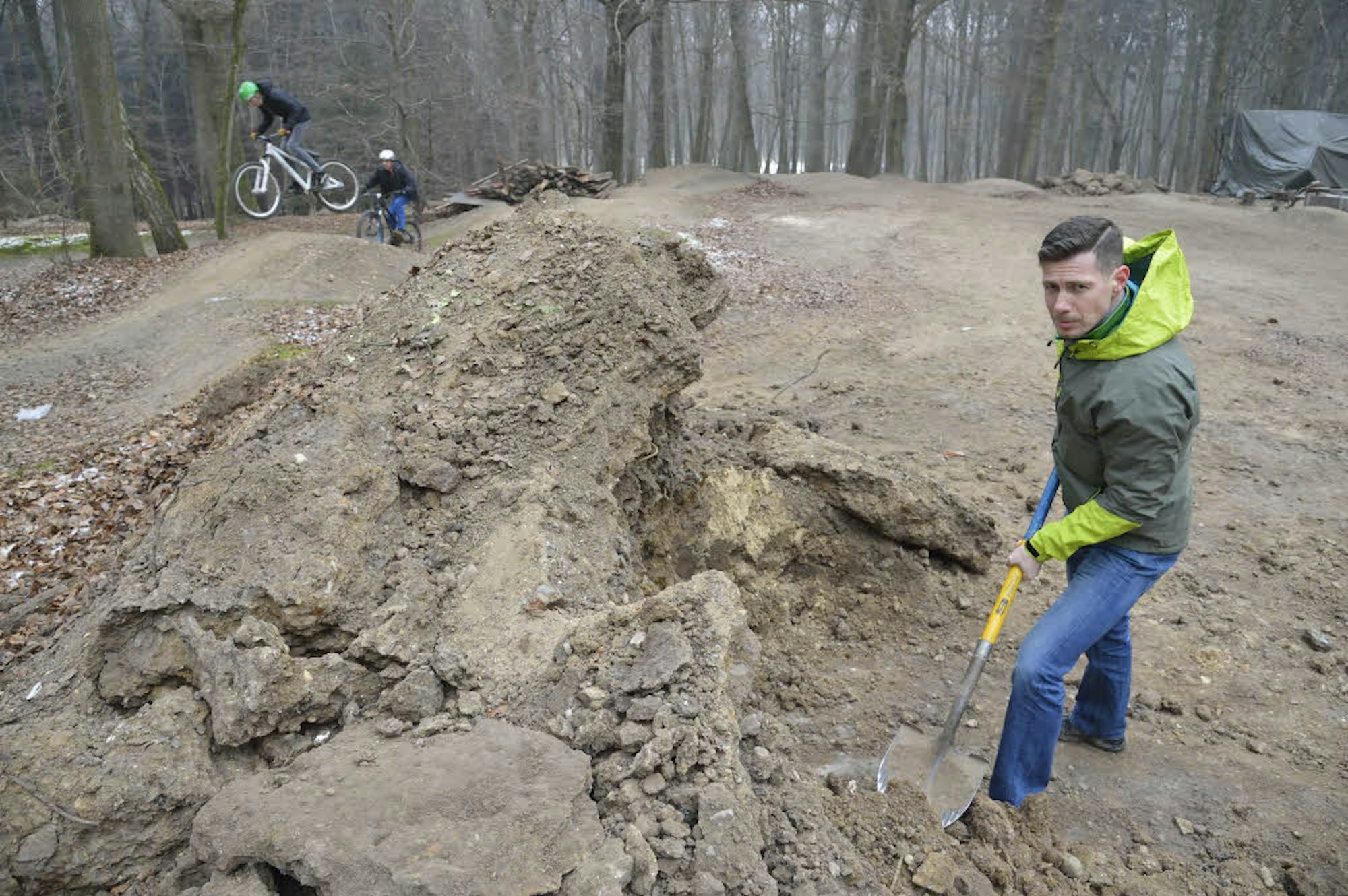 „Wir sind davon Mitte Dezember vollkommen überrascht worden“, sagt Sascha Bamberg vom Vereinsvorstand. Gemeint ist die aktuelle Ordnungsverfügung des städtischen Bauordnungsamtes gegen den Grundstückseigentümer, alle Aufbauten der Mountainbike-Strecke zu beseitigen, andernfalls drohen Bußgelder. Die Begründung: Die Strecke befindet sich im sogenannten Außenbereich, einem Gelände, auf dem eine Bebauung nicht erlaubt ist. Die Vereinsmitglieder sind bereits ausgerückt, um die hölzernen Rampen und Sprungtürme zu demontieren: Es ist das Aus für das Freizeitparadies neben dem Waldfriedhof, in das die Biker viel Arbeit und Geld gesteckt haben – Bamberg spricht von einer Summe in fünfstelliger Höhe.