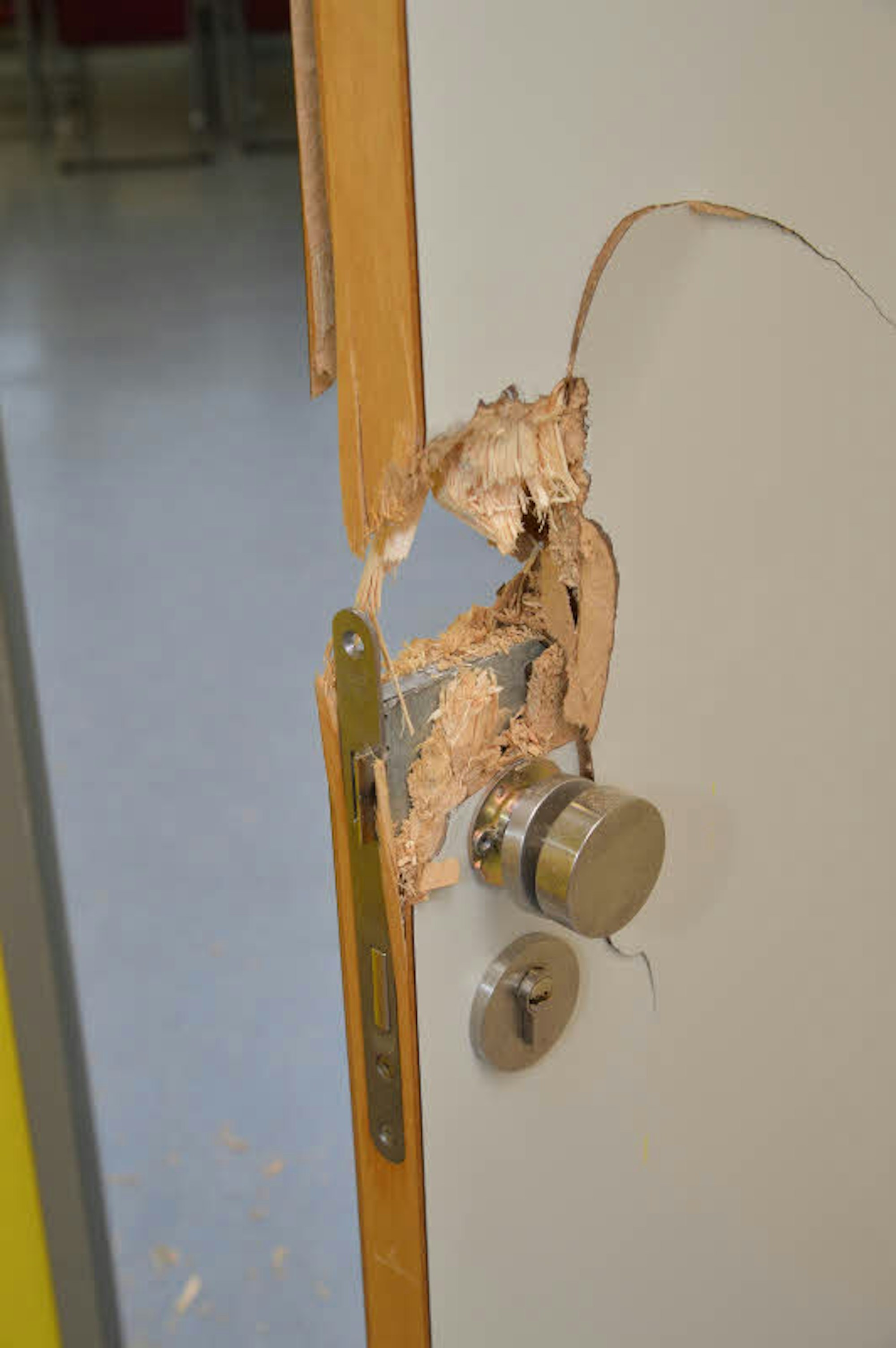 Total zerstört: Mehrere Türen traten die Einbrecher auf.