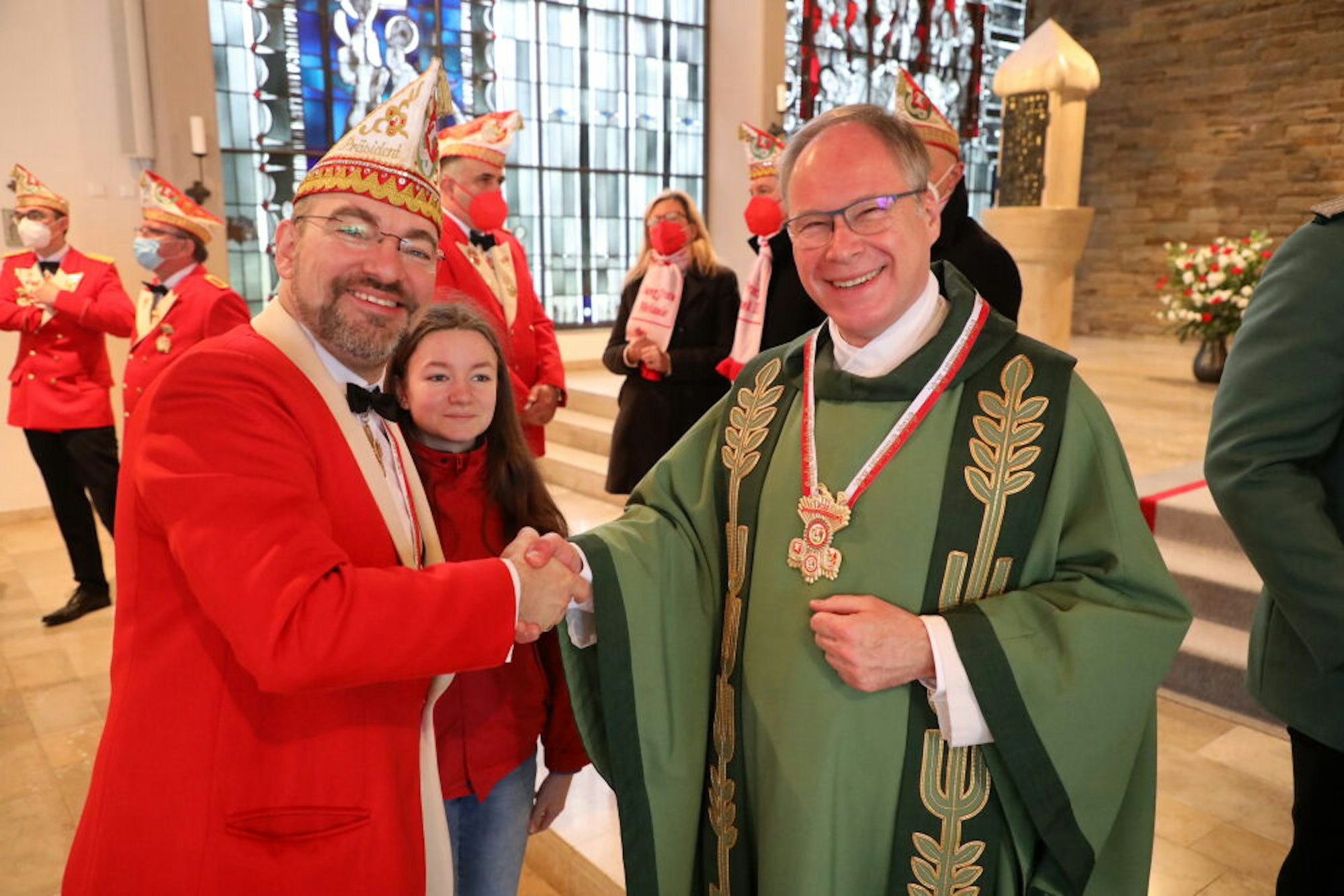 Den ersten Orden außerhalb der KG überreichte Große-Gladbacher-Präsident Alexander Pfister (l.) an Pfarrer Wilhelm Darscheid.
