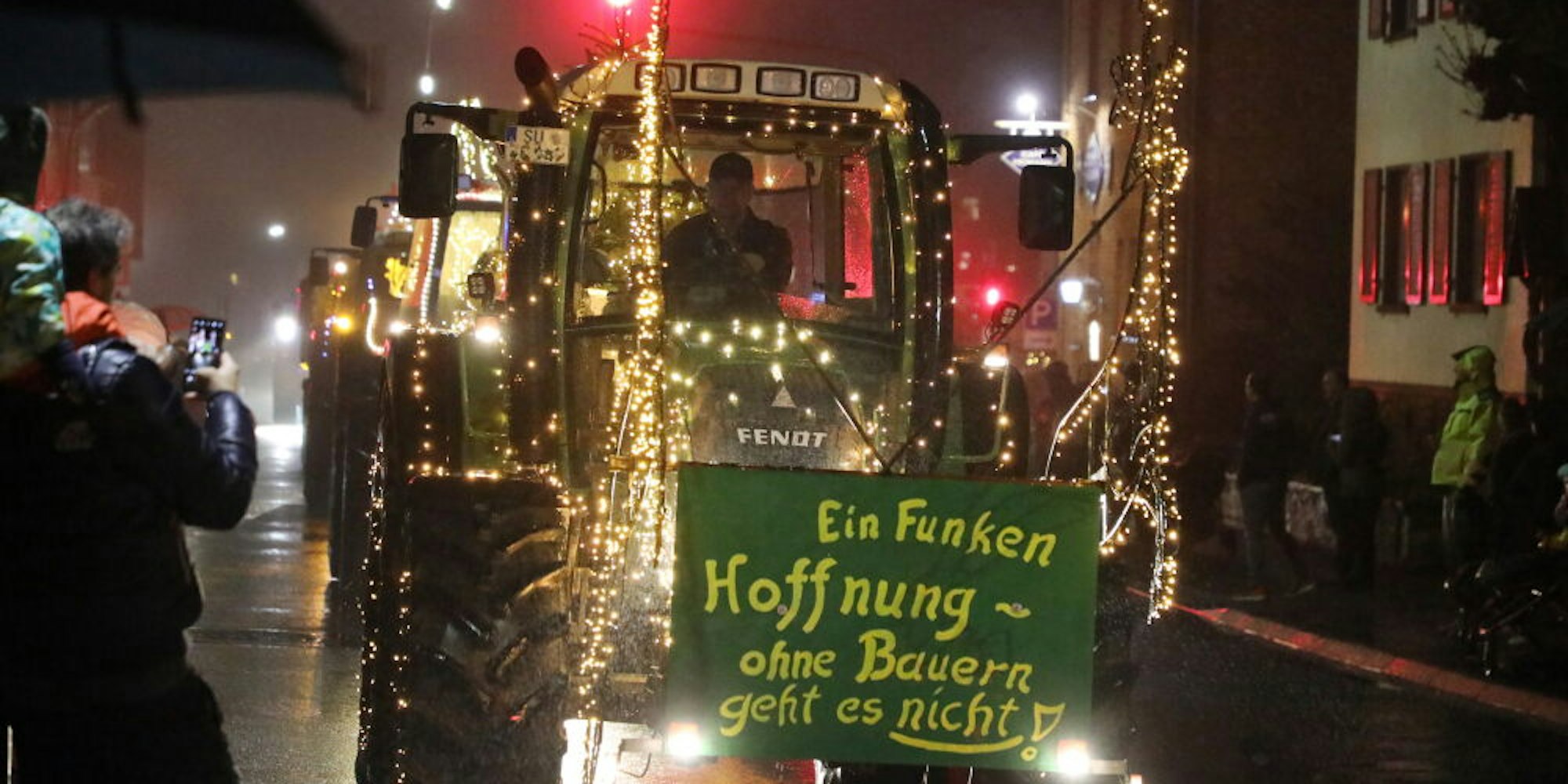 Bunte Lichter, ernste BotschaftWeihnachtliche Traktoren tuckern durch Rhein-Berg