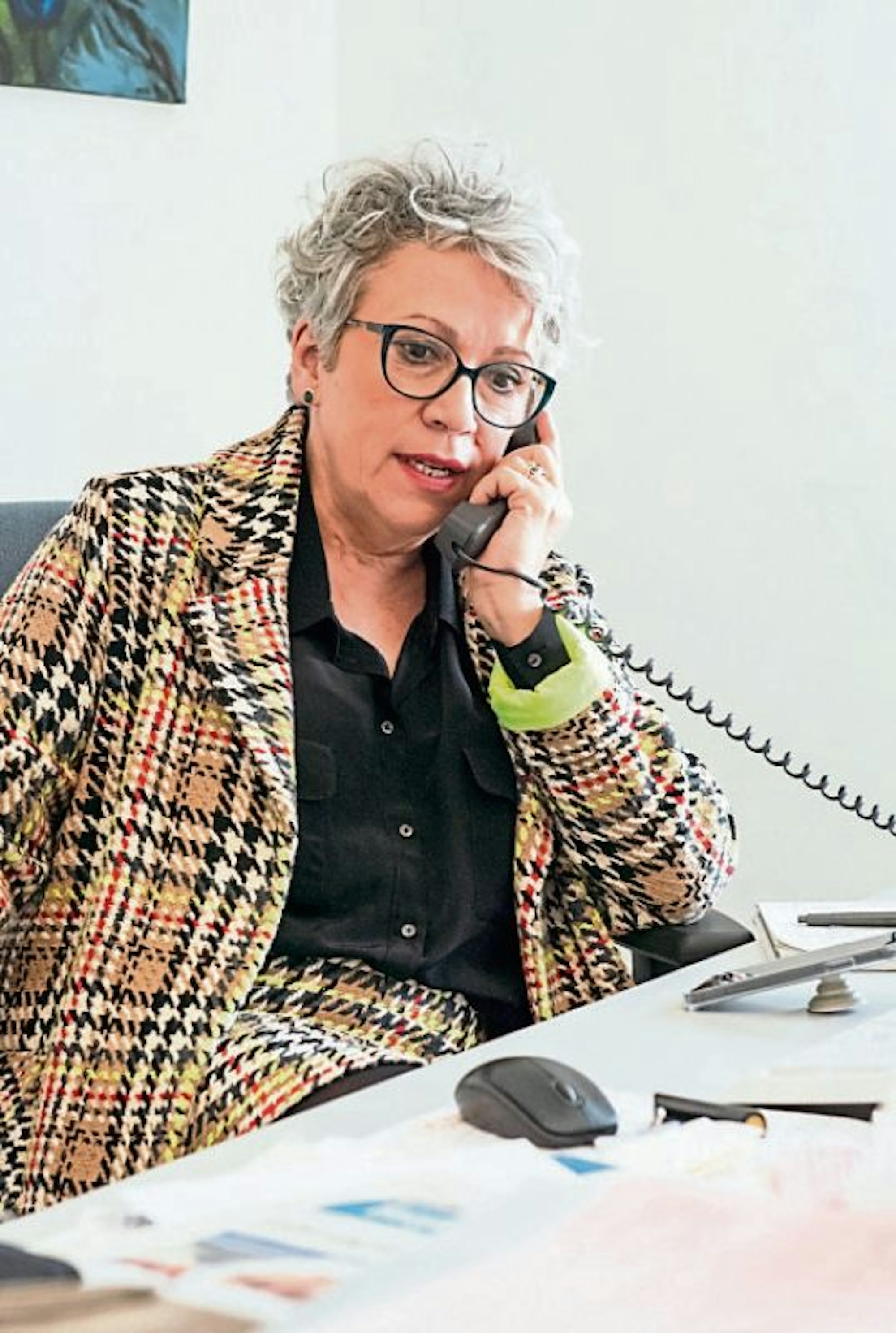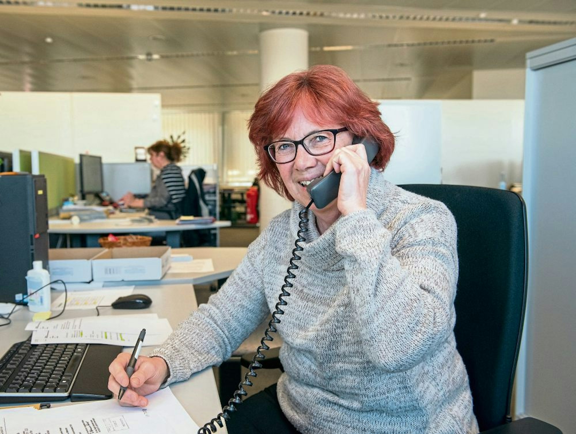 Elke Bachem gibt erfreulich Nachrichten am Telefon durch.