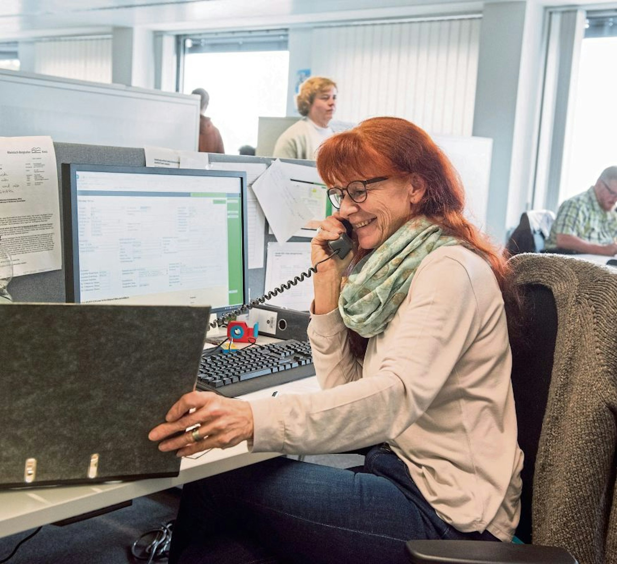 „Ich bin eine von über 20 Mitarbeitenden am Bürgertelefon. Im normalen Betrieb arbeite ich in der Bauaufsicht des Rheinisch-Bergischen Kreises.