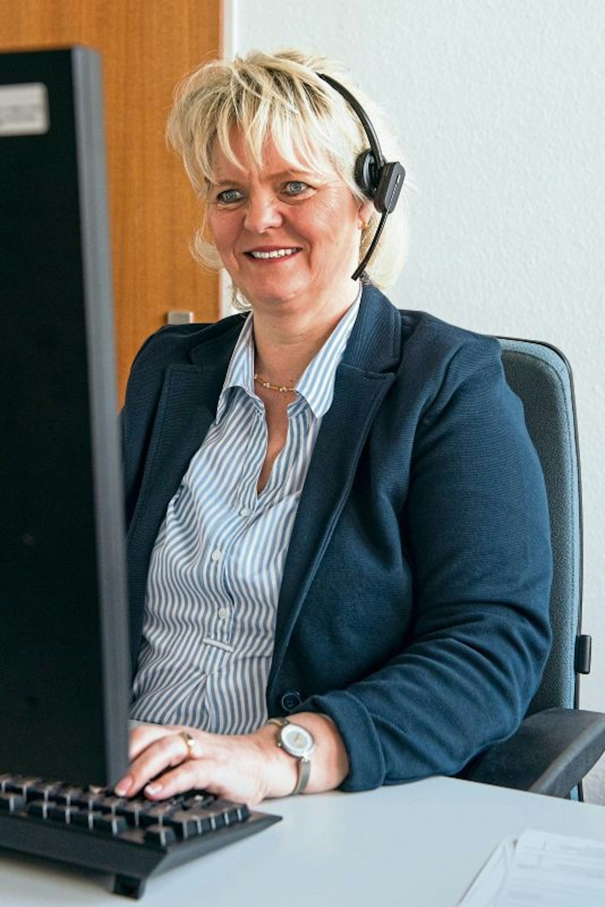 Christine Schwarzenthal am Corona-Bürgertelefon des Kreises..