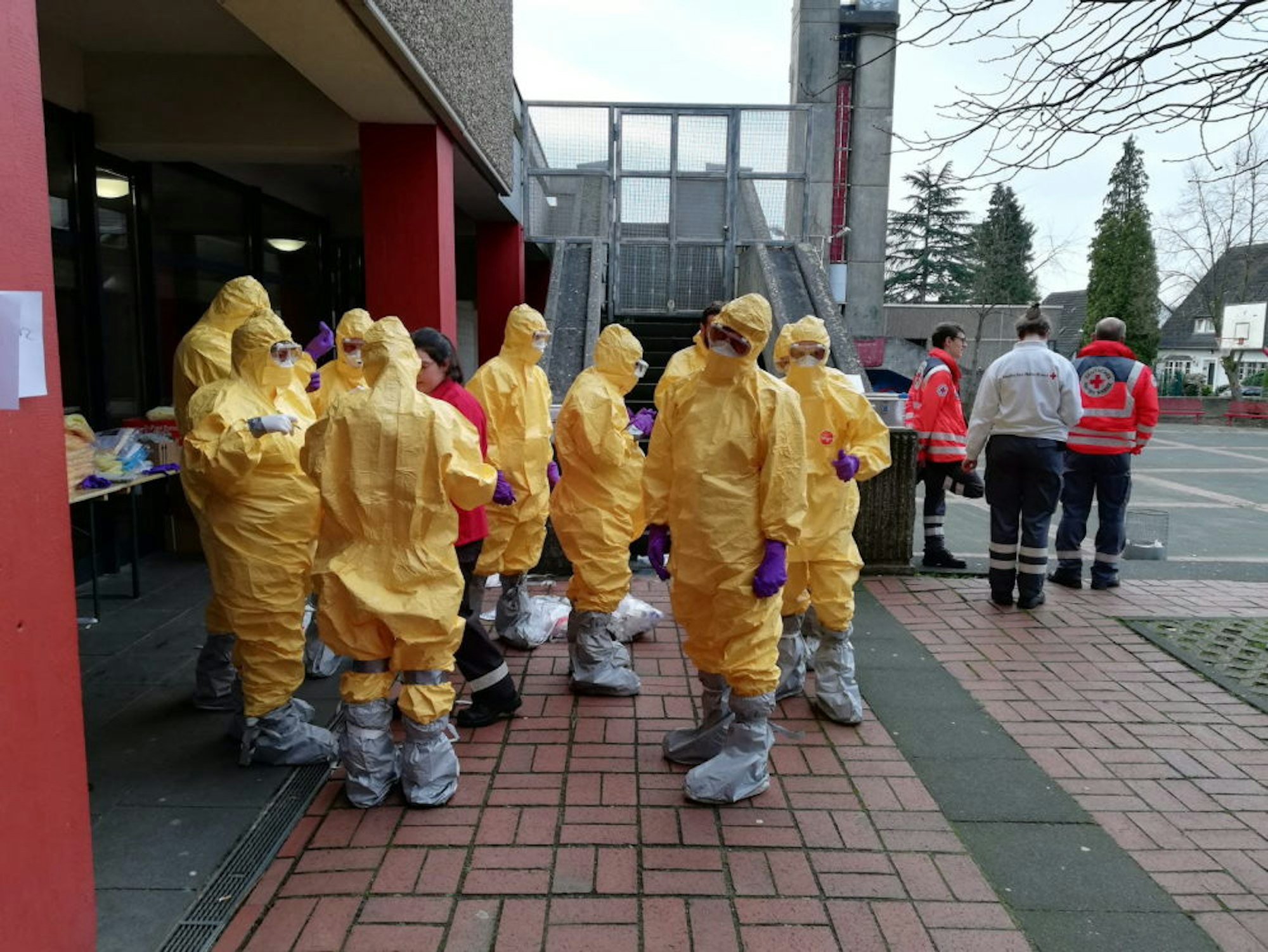 Dabei beschränkt sich der Einsatz der Rotkreuzler schon jetzt nicht mehr allein auf den Telefondienst. Als am Sonntag die Massenabstrich-Entnahme bei den Bensberger Realschülern fällig wurde, waren die Helfer ebenso im Einsatz wie am Montag, als die Overather Karnevalisten reihenweise vor Ort untersucht werden mussten.