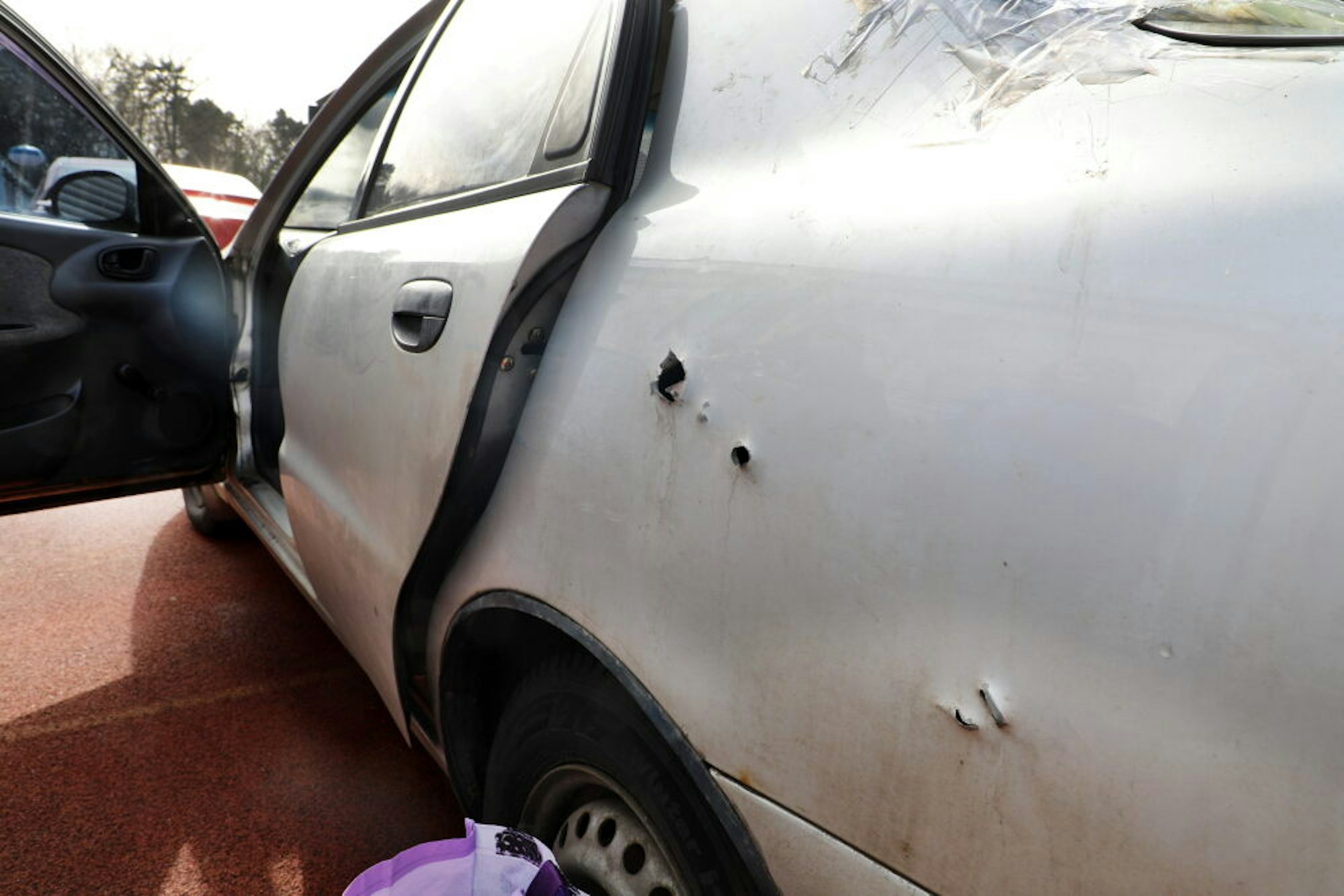 Granatsplitter und Kugeln haben die Karosserie und Scheiben des Autos durchschlagen.