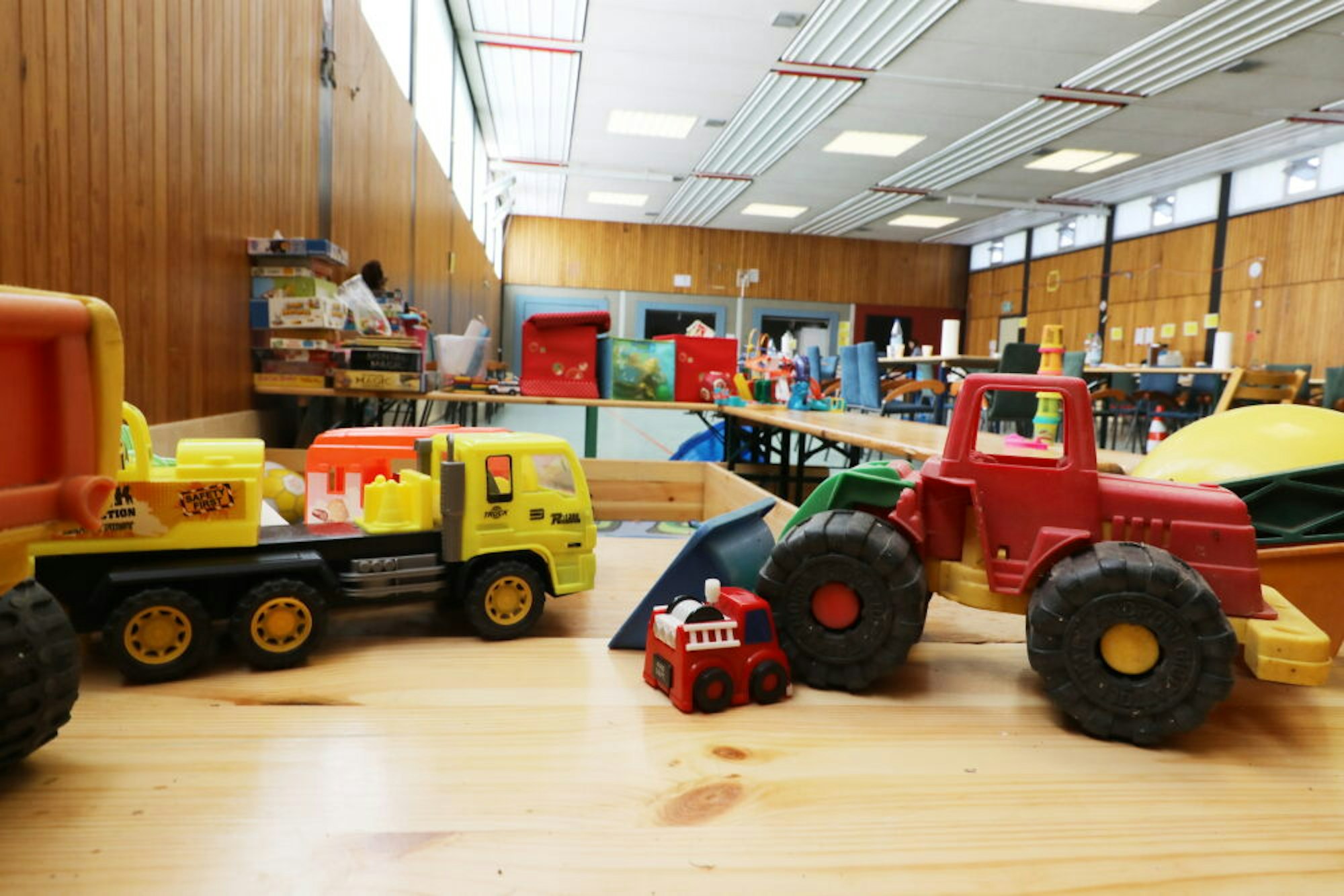 In der Ecke der Halle ist eine Spielecke für Kinder eingerichtet. „Wenn es den Kindern gut geht, wird es auch für die Mütter leichter.“ Man versuche, es den Menschen ein wenig angenehmer zu machen. Auch die mentale Gesundheit seiner Mitarbeitenden hält Kunz im Auge: „Noch können sie viel tun und helfen. Aber das ist kein Sprint, sondern ein Dauerlauf“, sagt er.