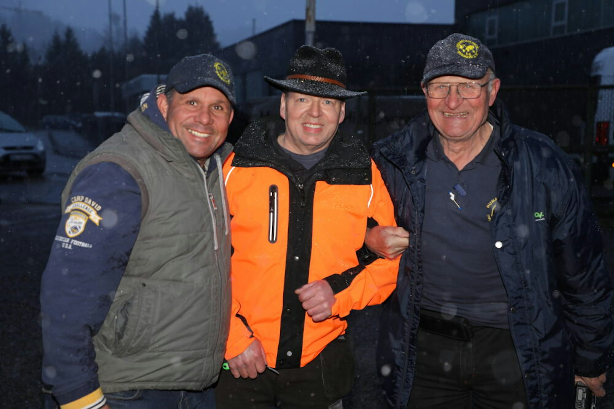 Brachten den Hilfskonvoi auf den Weg: (v.r.) Konvoi-Leiter Norbert Kuhl und Technik-Chef Martin Dickmann von der Humanitären Hilfe Overath und Ulrich Gürster vom Bergisch Gladbacher Verein Hilfe Litauen Belarus.