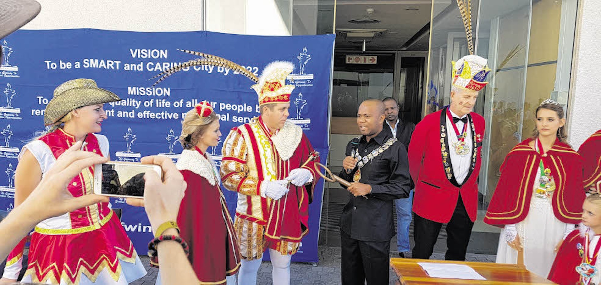 Jecke Schlüsselübergabe beim Bürgermeister von Windhuk.