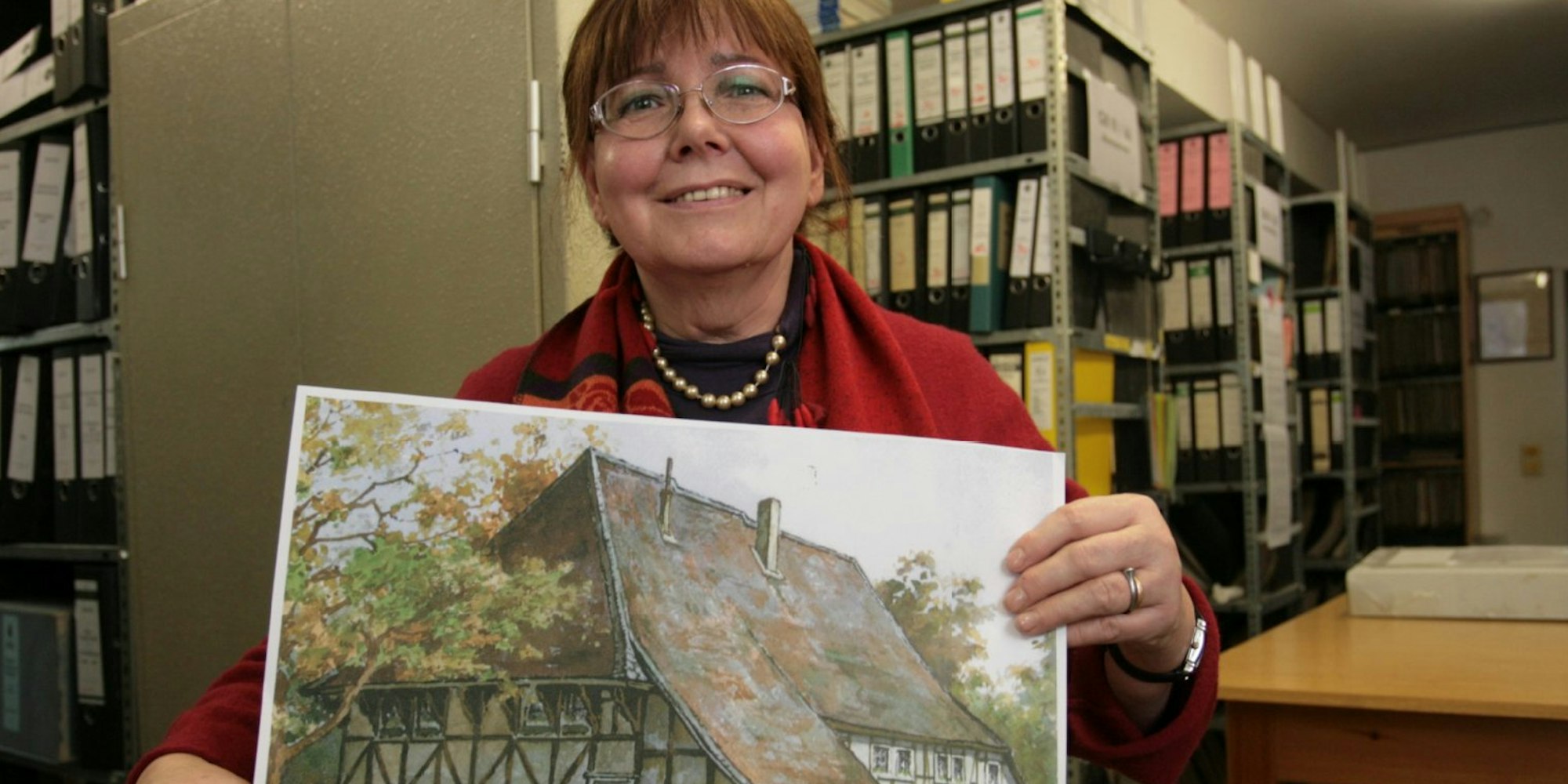 Die Verwaltungsmitarbeiterin machte sich auf die Suche nach weiteren Werken von Fritz Sauer und wurde im eigenen Haus fündig. So hingen weitere Bilder des Kunstmalers im Besprechungsraum. „Die Gemeinde hatte elf Originale und eine Farbkopie, bei der wir nicht wissen, woher sie stammt“, erzählt Ströbel-Dettmer. Sie leitet das Verwaltungsarchiv und hat mit Kunst dabei eigentlich nichts zu tun. „Aber ich habe auch eine Museumsausbildung und habe mich gleich erkundigt, wie man solche Bilder am besten konserviert.“ Dunkel sollen die Aquarelle gelagert werden, bekam sie zuhören, damit der Lichteinfall die Farben nicht verändert. Deshalb organisierte die Archivarin einen passenden Karton, in dem die Kunstwerke nun übereinander liegen, durch säurefreies Papier säuberlich voneinander getrennt.
