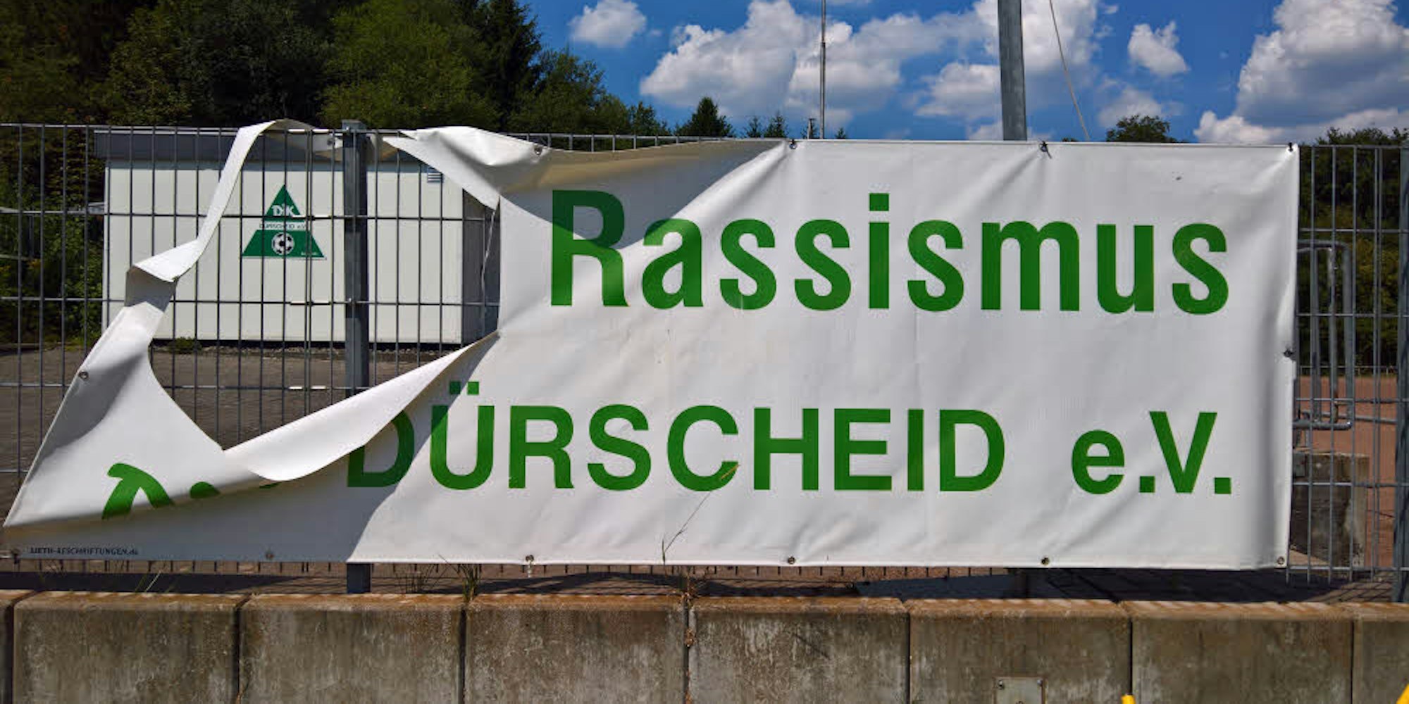 Aus dem Banner wurde gezielt das Wort „gegen“ herausgeschnitten, die DJK vermutet eine bewusste Aktion gegen die Initiative des Vereins.