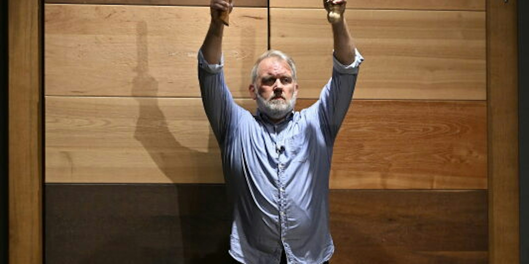 Schlagzeuger Stuart Gerber klopft mit verschiedenen Holzschlägeln an die Himmelstüre, bis sie sich öffnet.