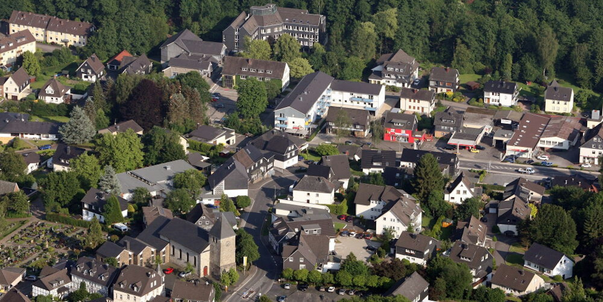Das Oberdorf (vorne) umfasst das Plangebiet ebenso wie den Stockhausen-Platz (hi.).