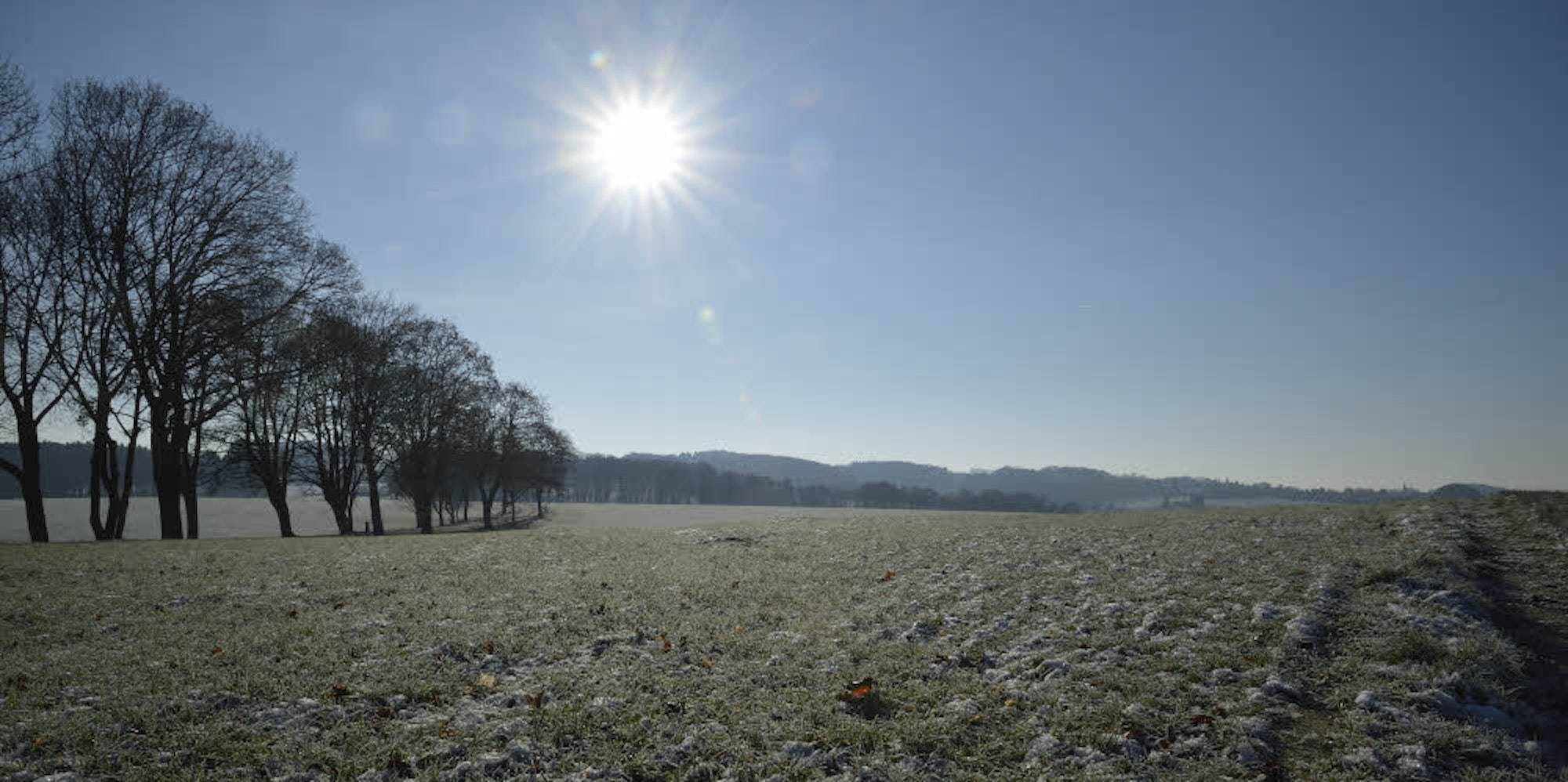 Winterlandschaft mit Alleebäumen nahe Kürten-Spitze. Gewerbepläne gibt es hier seit mehreren Jahren.