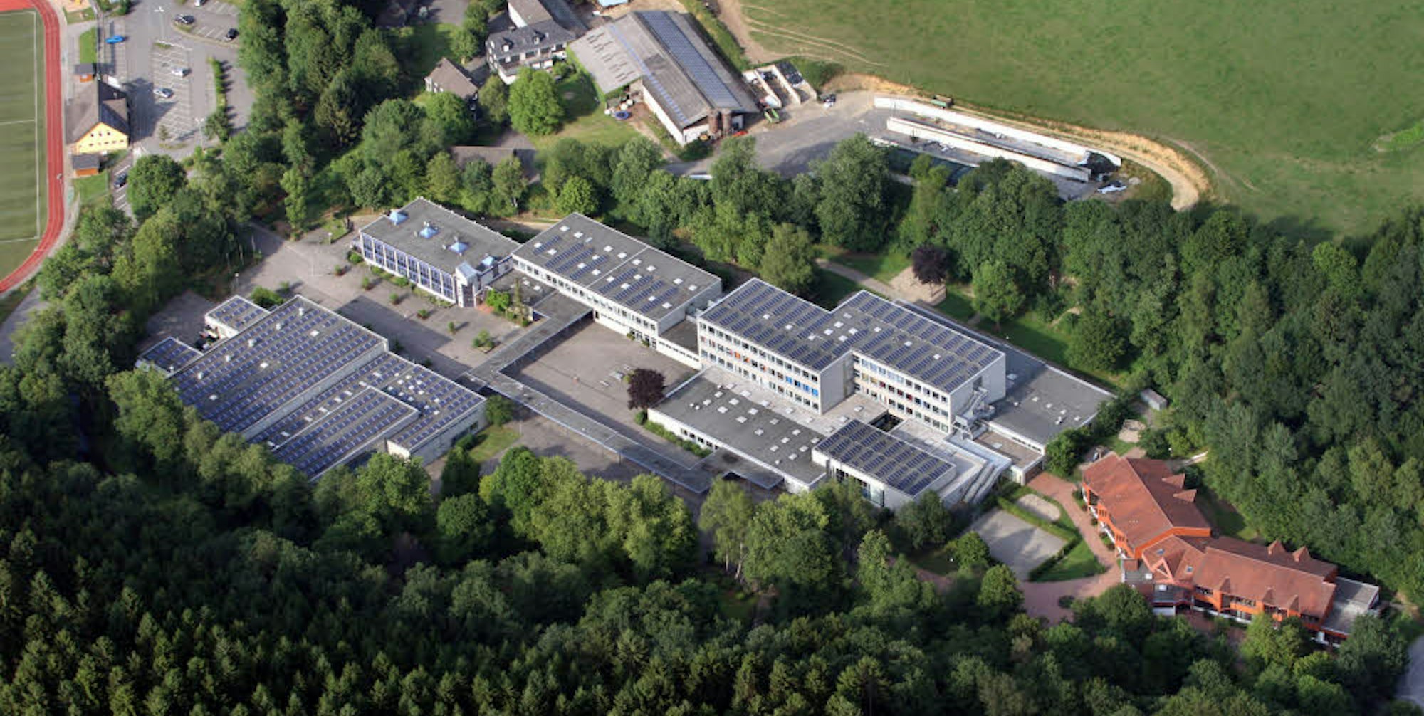 Ab dem Sommer 2020 werden die Gesamtschulgebäude saniert. Die Sülztalhalle (links) ist zum Schluss dran.