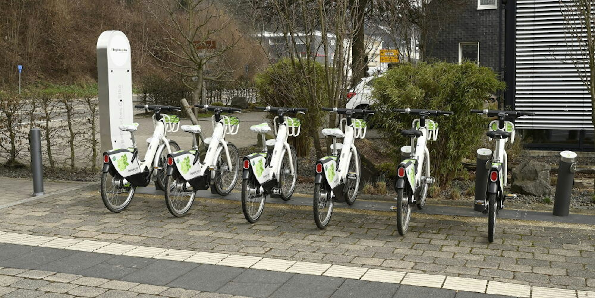 Mit den Bergischen E-Bikes plus Aufladestation am Rathaus ist das Regionale-Projekt Mobilstation in Kürten angekommen. Die weißgrünen Räder sind begehrt und gelten als große Erfolgsgeschichte überall im Kreis.