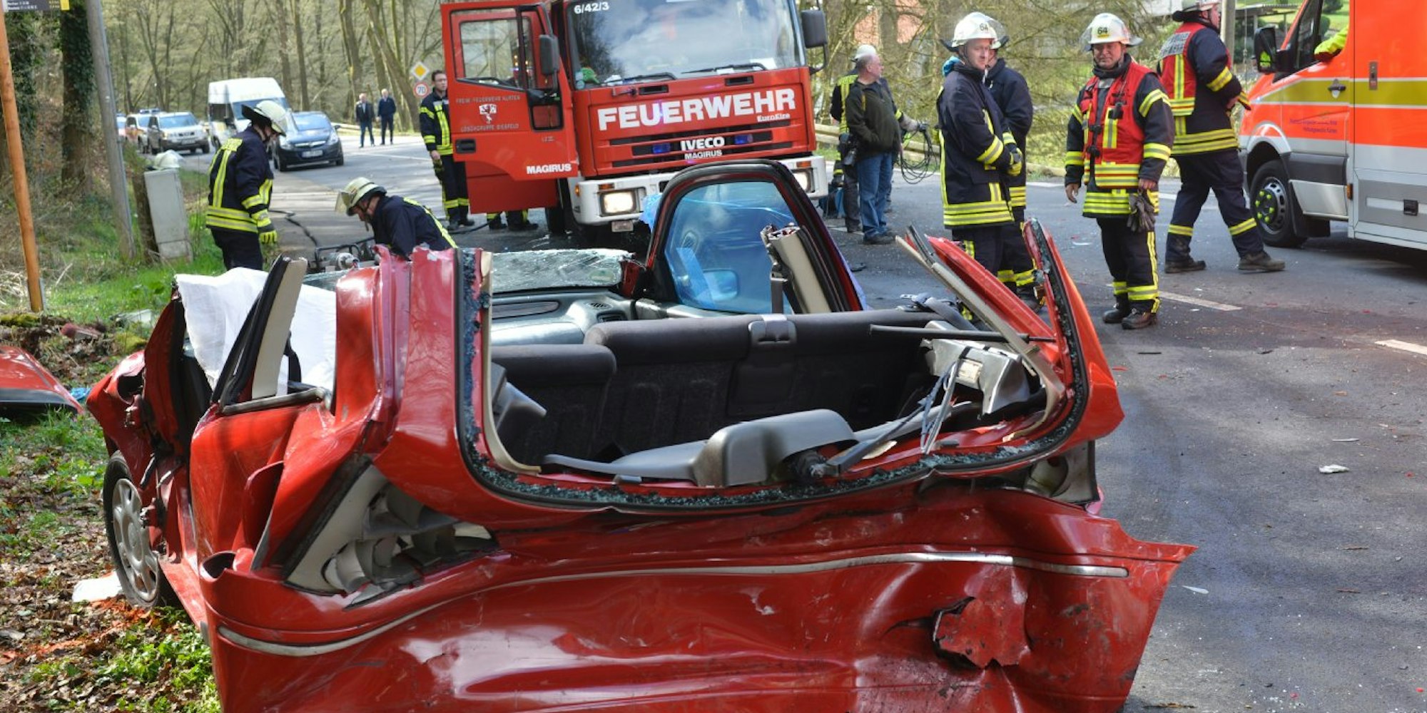 Der 73-Jährige fuhr mit seinem Auto ungebremst in den Kleinwagen. der Kleinwagen dreht sich um die eigene Achse und landete auf dem Bürgersteig. Der Kombi des Wipperfürthers blieb auf drei Reifen in der Böschung hängen. Fahrzeugteile und Glasscherben lagen noch 50 Meter von der Unfallstelle entfernt auf der Straße. Umherfliegende Trümmerteile beschädigten ein entgegenkommendes Auto.