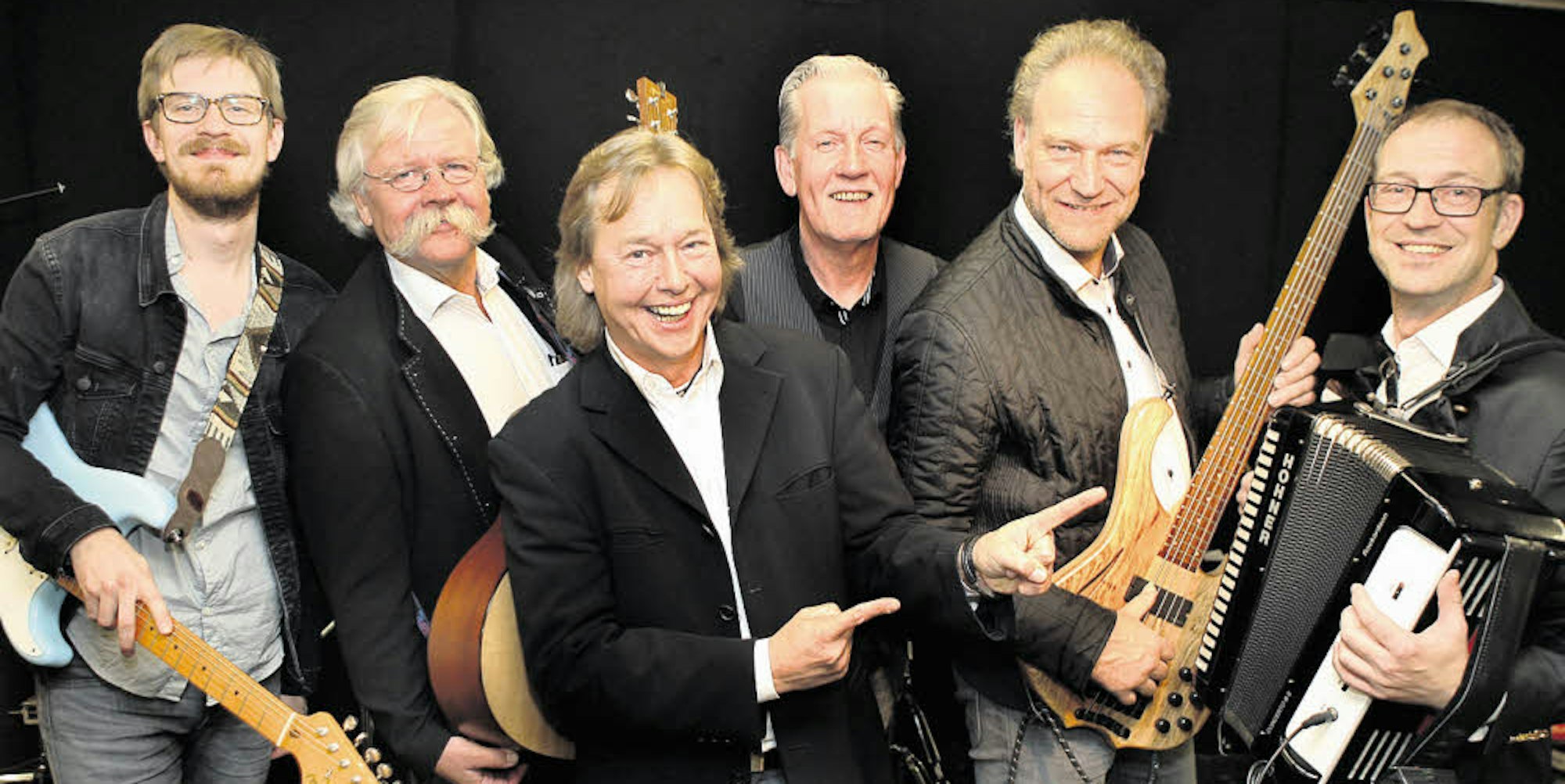 Die Labbese in neuer Besetzung: (v.l.) Sebastian Kierdorf (Mandoline, E-Gitarre), Michael Niesen (Gitarre), Detlev Scholz (Gesang), Bernd Kierdorf (Schlagzeug), Andreas Pater (Bass) und Klaus Blömeke (Keyboards, Akkordeon)