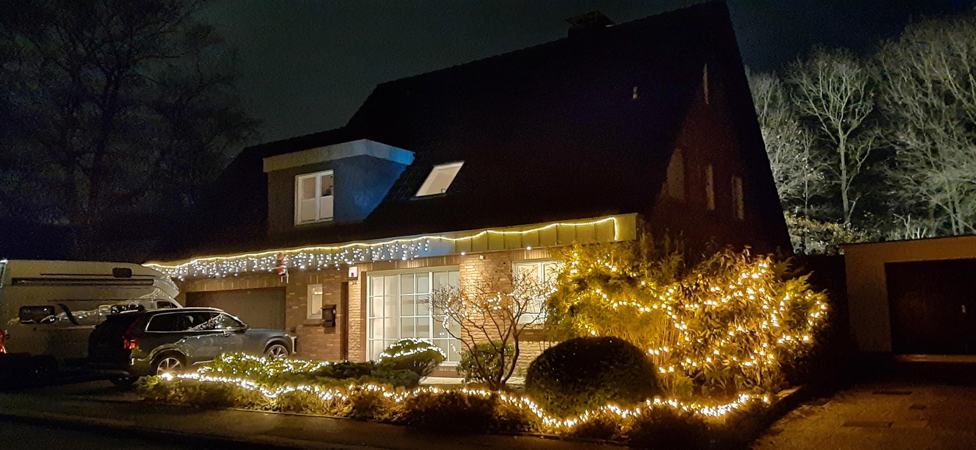 Vorweihnachtlich: Entlang der Rätseltour erstrahlt manches Gebäude in Lichterglanz – in der Dämmerung besonders reizvoll.