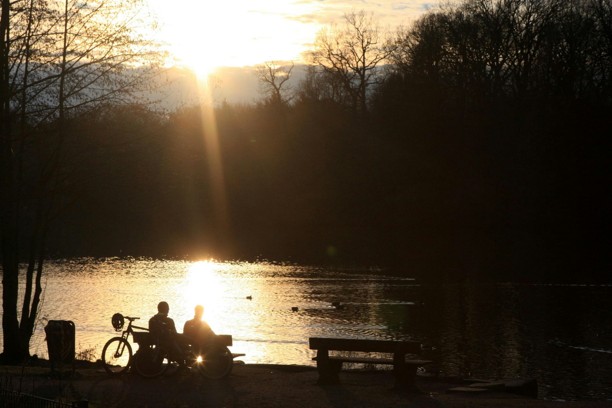 Abendstimmung am Bensberger See an der Saaler Mühle. In dem Gebiet wurde früher Braunkohle abgebaut.