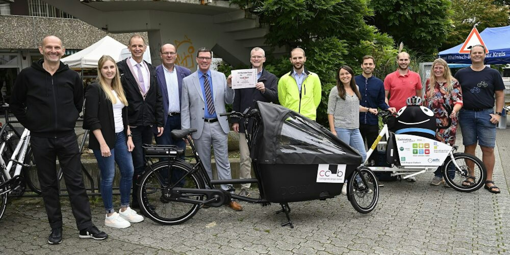 Eines der Lastenräder hat die Easy Bike-Radstation in Bergisch Gladbach gestellt; das andere kommt vom Kölner Lastenrad-Geschäft Cologne-Cargo Bike. Mit der Aktion wolle das Geschäft allerdings keine Werbung für sich machen, sondern eine für das Lastenrad: „Weniger CO2 , fußgängerfreundliche Straßen, das wollen wir“, so Geschäftsführer Dhyan Borghoff. „Die Stadt Köln hat zweimal eine Lastenradförderung für Privatpersonen ausgeschrieben, das hat viel verändert. Auf diese Weise haben wir Kunden aus allen Schichten bei uns.“ Er würde diese Förderung nach Kölner Vorbild landesweit begrüßen: „Es setzt einfach einen Impuls.“