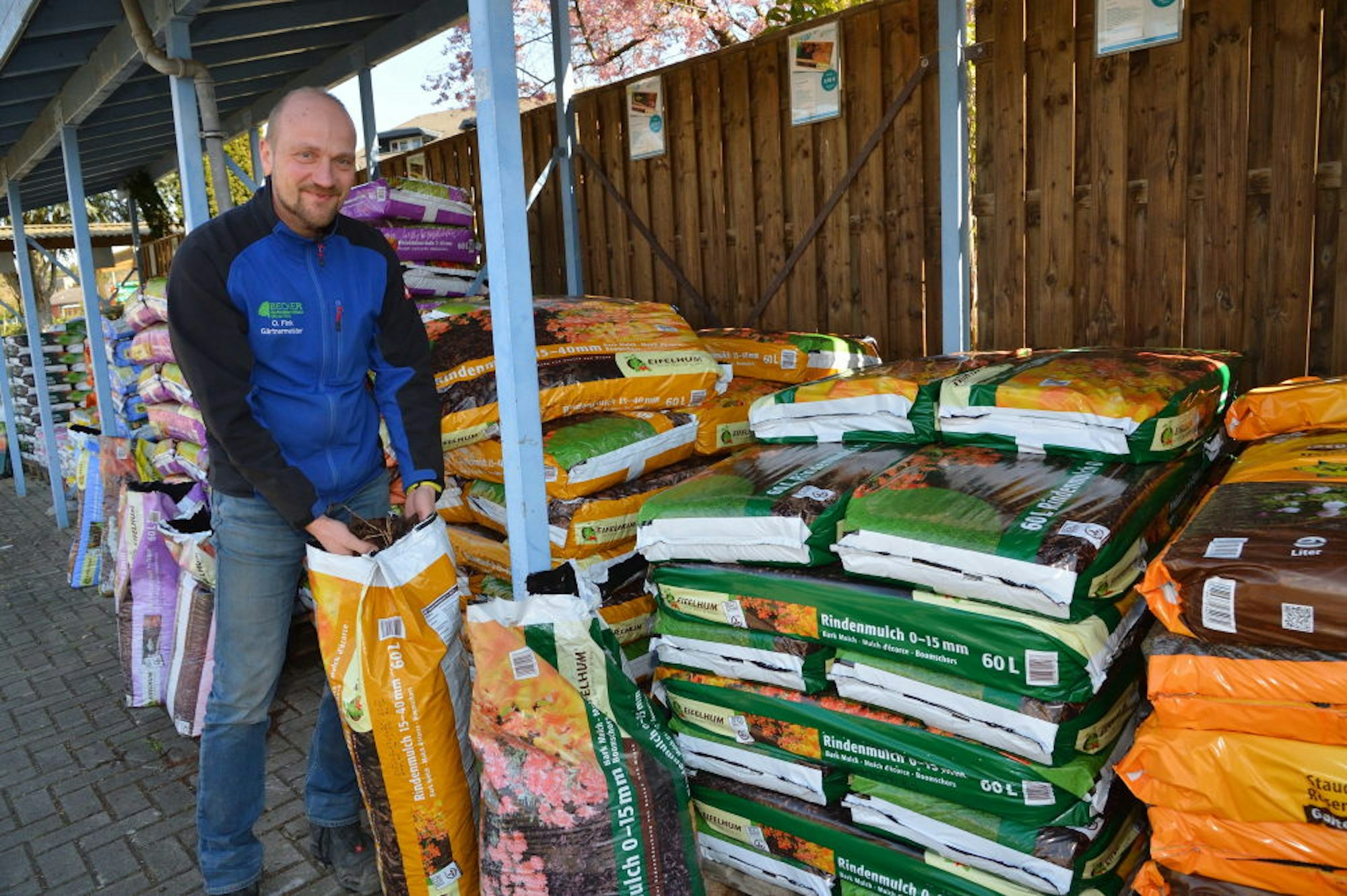 Rhein-Berg – „Das hier ist quasi unser Toilettenpapier“, sagt Oliver Fink lachend und deutet auf die über- und nebeneinander gestapelten Säcke mit Rindenmulch. „Kurz bevor die Kontaktsperre begann“, schildert der Inhaber der Gartenbaumschule Becker in Refrath, „wurden wir hier fast überrannt.“ Rindenmulch und Gartenerde seien von den Kunden schneller in die Autos geladen worden, als man habe nachfüllen können.