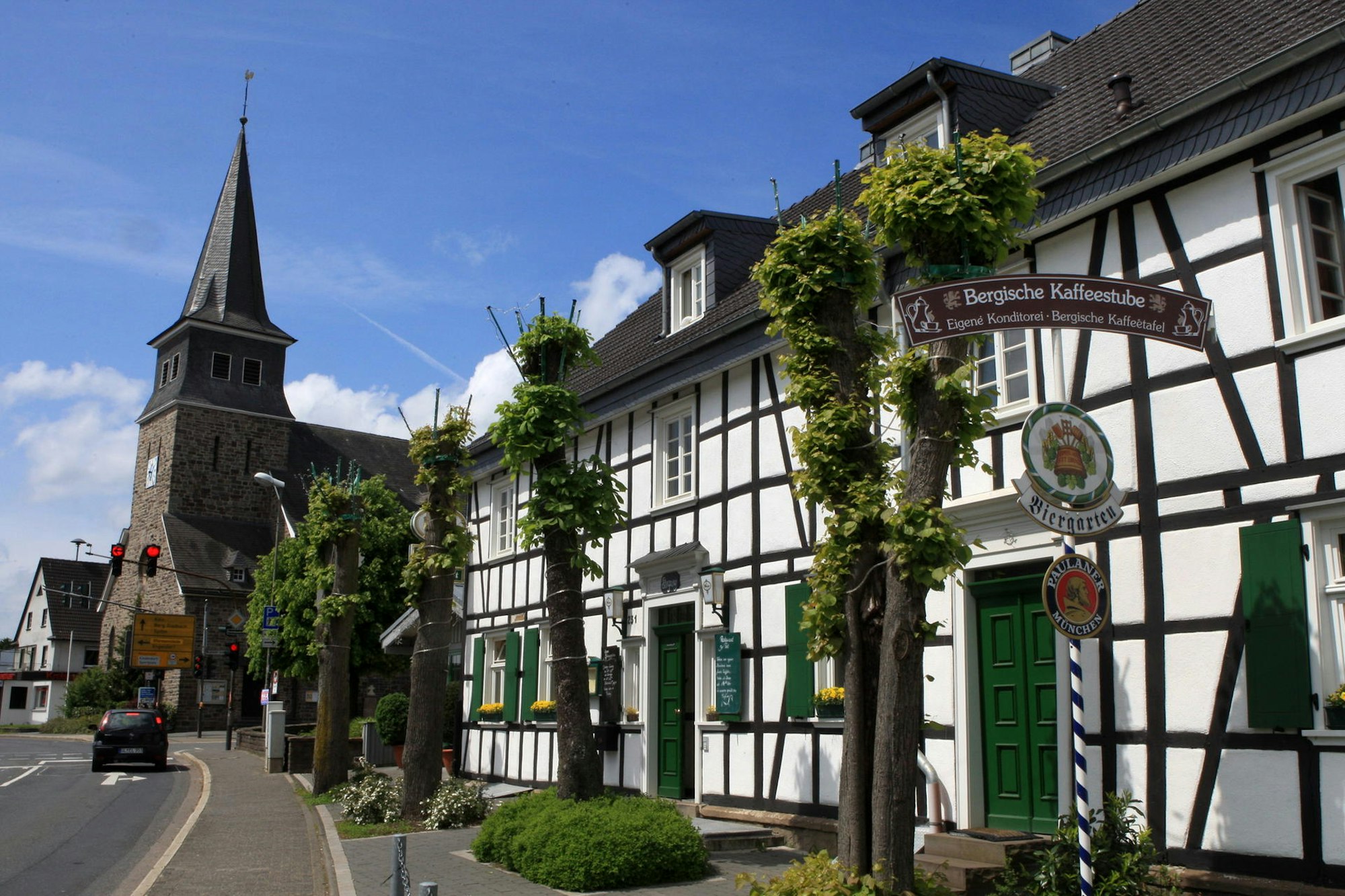 Jetzt eine Stärkung: Am Ziel unserer kleinen Wandereinlage lockt in Biesfeld eine Einkehr und die Kirche „Zur schmerzhaften Mutter“.