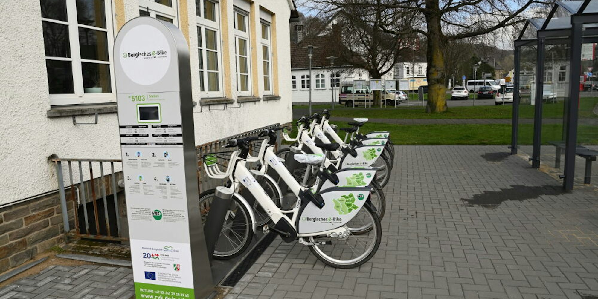 Die Bergischen E-Bikes sind auch in Odenthal ein Renner, hier die Ausleihstation in der Ortsmitte.