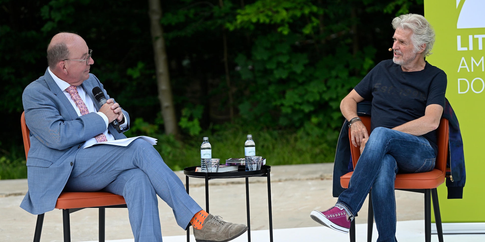 Eine völlig andere Atmosphäre herrscht bei der folgenden Veranstaltung mit Bestseller-Autor Frank Schätzing, der im Gespräch mit Literaturkritiker Denis Scheck sein Buch „Was, wenn wir einfach die Welt retten? Handeln in der Klimakrise“ vorstellt. Das Publikum erlebt es als faktenreiches Sachbuch, das auch unterhaltsam daherkommt – etwa wenn Schätzing in der einzigen vorgelesenen Passage von einem Taxifahrer erzählt, der sich als Verschwörungstheoretiker erweist. Dass bei dem Buch von einem Wissenschaftsthriller die Rede ist, wird hingegen nicht nachvollziehbar – anders als Schätzings Aussage zur Klimakrise, dass die Menschheit „in einem Thriller“ lebe.