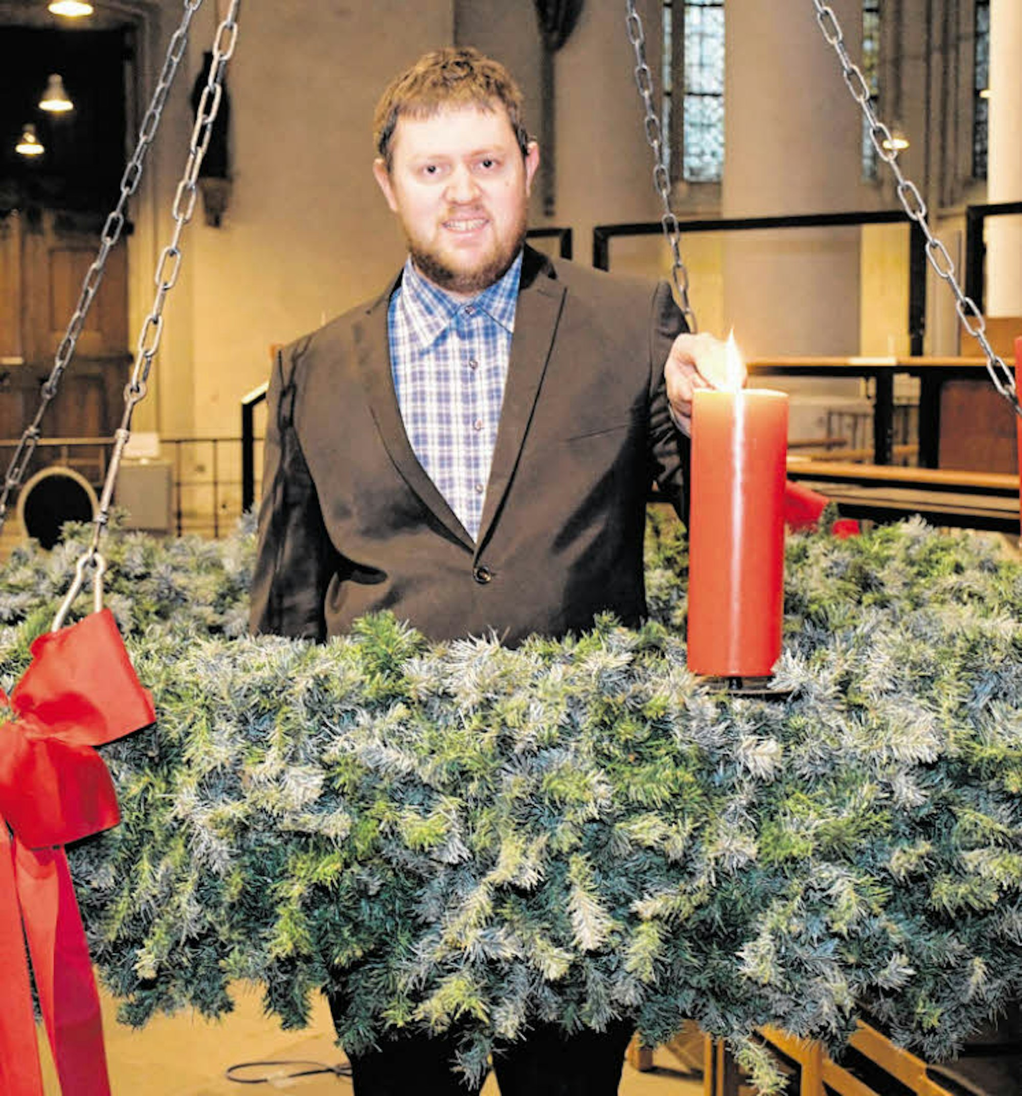 Lukas Brockmann entzündet die Lichter im Adventskranz.