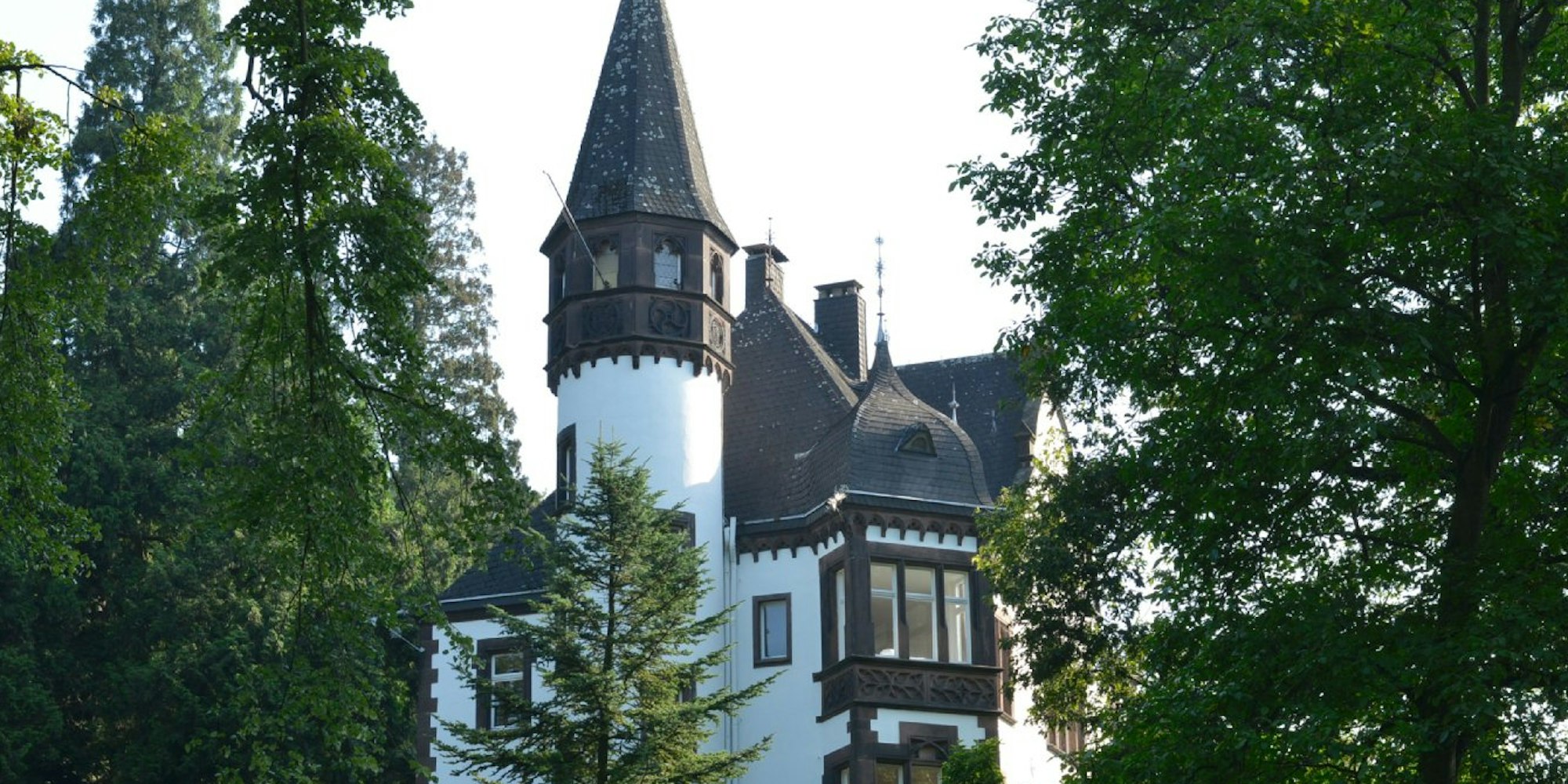 Vielleicht ist die martialische Figur mit ein Grund dafür, warum das Projekt, für das sie anno 1902 warb, nie realisiert wurde: eine Villenkolonie für reiche Kölner im „Odinsthal“ zwischen Schildgen und Altenberg. Zehn Entwürfe sind dem zerfledderten Heftchen, das Historiker David Bosbach im Odenthaler Gemeindearchiv präsentiert, angefügt – prächtige Gebäude mit Türmchen und Erkern, die vermuten lassen, dass das zu diesem Zeitpunkt bereits bestehende Osenauer Schlösschen den Kölner Architekten Joseph und Edwin Crones als Inspiration gedient haben könnte. Als „Musterhaus“ für das ehrgeizige Projekt kam zudem das Schildgener Gut Hoverhof in Frage, entworfen von Wilhelm Hoffmann, der auch an der Drachenburg in Königswinter gearbeitet hatte.